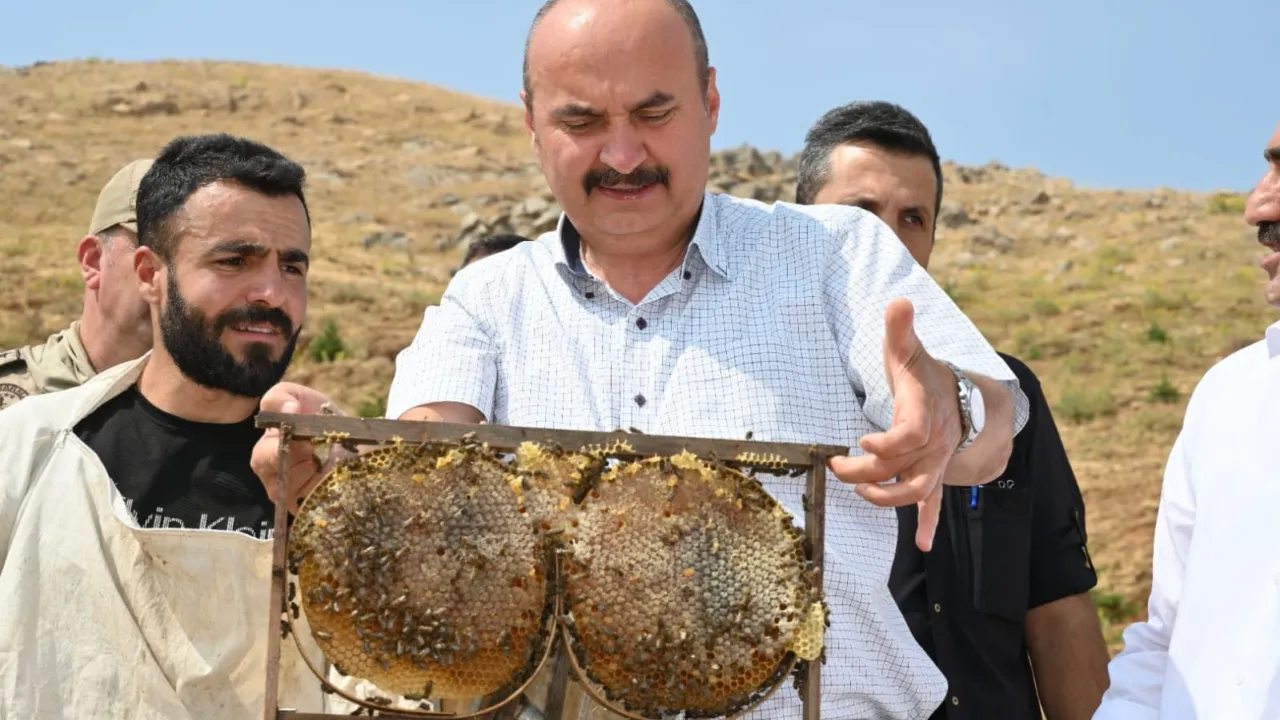Batman Valisi Ekrem Canalp, organik bal üretiminin yapıldığı yaylada arıcılarla buluşarak üretim süreci hakkında bilgi aldı.