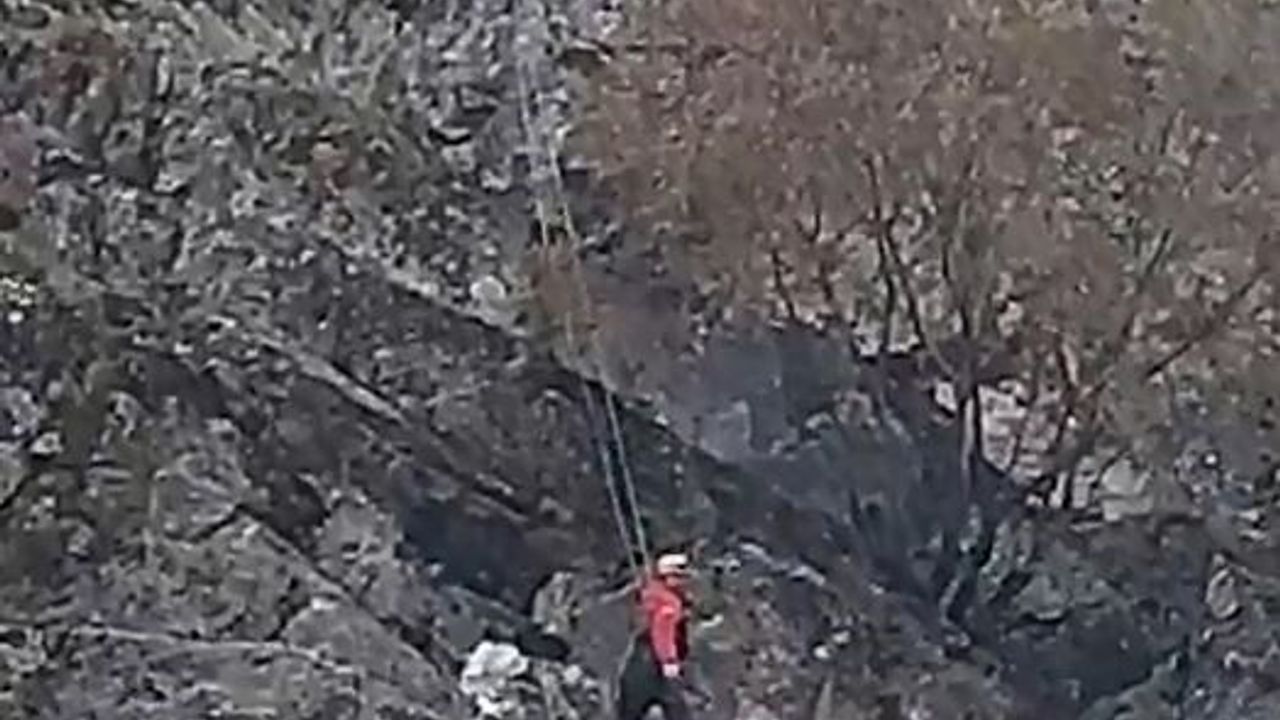 Ekipler, halat yardımıyla sarp kayalıklardan aşağı inerek keçileri bulundukları yerden çıkartıp sahibine teslim etti.
