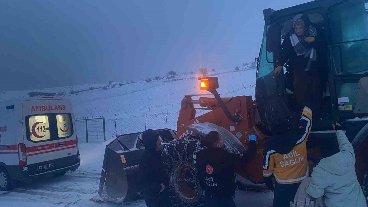 Edinilen bilgilere göre, Bayırlı köyünde hamile bir kadının rahatsızlanması üzerine yakınları durumu sağlık ekiplerine bildirdi. Ancak bölgede etkili olan yoğun kar yağışı ve tipi nedeniyle ambulans köye kadar ilerleyemedi. Bunun üzerine Özel İdare ekipleri köylülerin de desteğiyle çalışma başlatıldı. Hamile kadın, kepçeyle köyden alınarak yaklaşık 15 kilometre sonra ulaşılabilen noktada bekleyen ambulansa teslim edildi. Sağlık ekipleri tarafından ilk müdahalesi yapılan kadın, daha sonra Batman Eğitim ve Araştırma Hastanesine sevk edildi.
