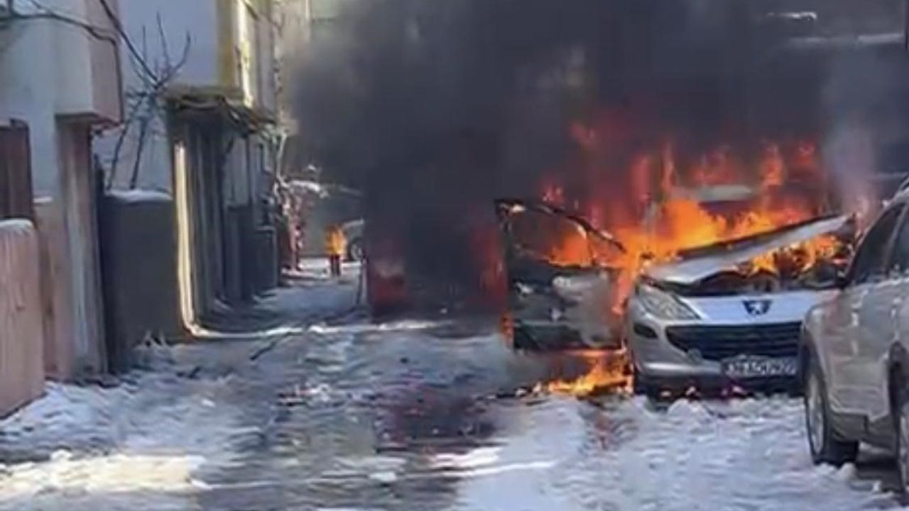 Batman'da sabah saatlerinde işe gitmek isteyen bir vatandaşın otomobili, soğuk hava ve don nedeniyle çalışmayınca alev aldı. Olayda panik yaşanırken, araç kullanılamaz hale geldi.