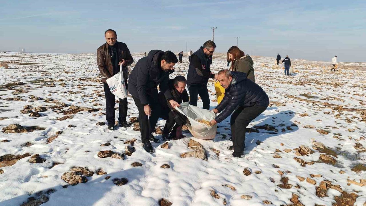 Batman'da sivil toplum kuruluşu temsilcilerinin katılımıyla yaban hayvanları için doğaya yem bırakıldı.
