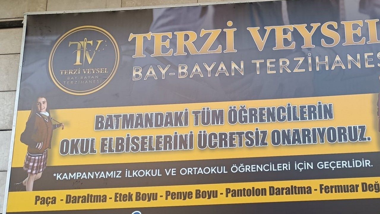 Batman kent merkezinde çeyrek asırdır terzilik mesleğini sürdüren terzi Sabahattin Gerkin, öğrencilere ve ailelere destek olmak amacıyla dikkat çeken bir kampanya başlattı. Bir AVM’nin birinci katında sadece tadilat işleri yaptığını belirten Gerkin, kampanyayı özellikle ilkokul ve ortaokul öğrencileri için tasarladı. Terzi Veysel olarak tanınan Sabahattin Gerkin, "Yaklaşık 25 yıldır Batman’da terzilik yapıyorum. Bu kampanyamızı da sırf öğrencilere destek olmak amaçlı başlattım. Öğrencilerin yırtıklarını, söküklerini ücretsiz yapıyorum" dedi.