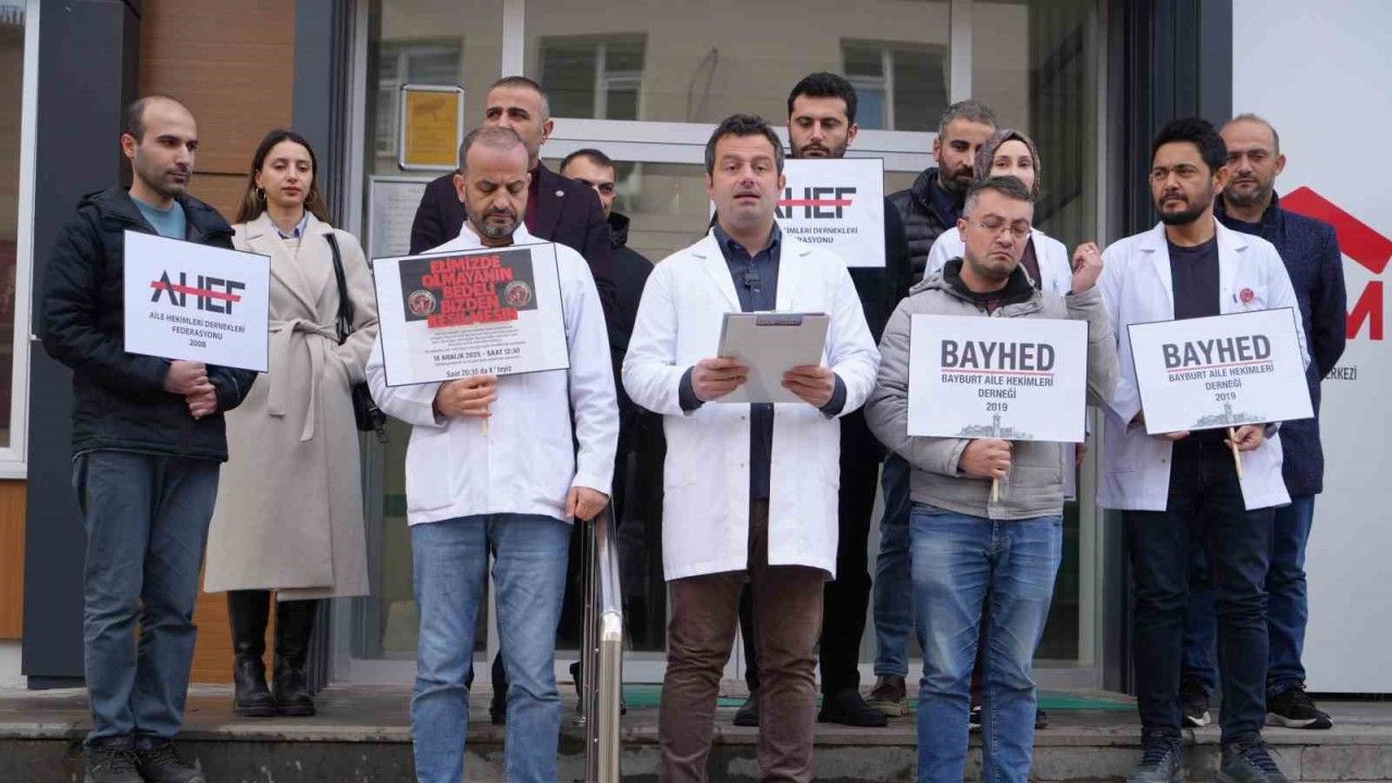 Aile hekimliği sisteminde uygulanan kontrol dışı ücret kesintileri ile artan iş yüküne tepki göstermek amacıyla Bayburt’ta aile hekimleri basın açıklaması yaptı. 2 No’lu Aile Sağlığı Merkezi önünde toplanan hekimler, mevcut uygulamaların hem sağlık çalışanlarını hem de vatandaşların aldığı sağlık hizmetini olumsuz yönde etkilediğini bildirdi.