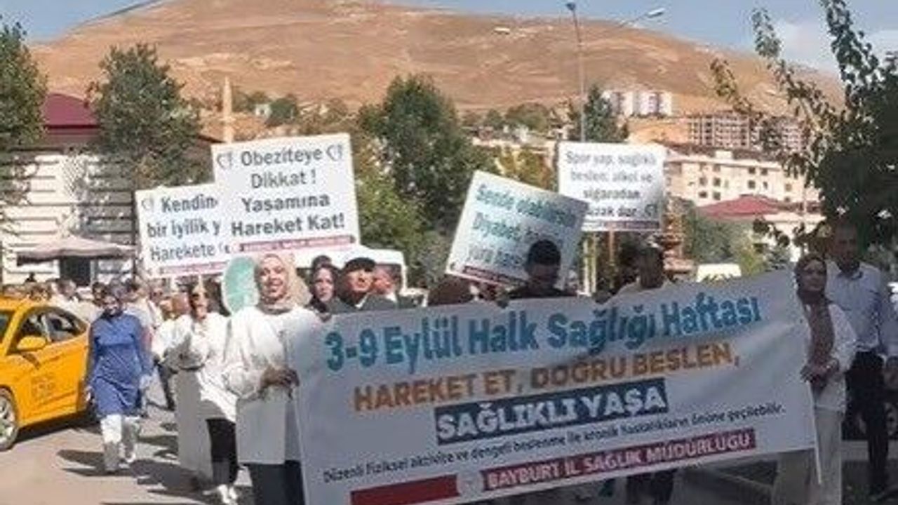 3-9 Eylül Halk Sağlığı Haftası etkinlikleri kapsamında koruyucu sağlık hizmetlerinin önemine dikkat çekmek ve obeziteyle mücadele bilincini artırmak amacıyla Bayburt’ta yürüyüş düzenlendi.