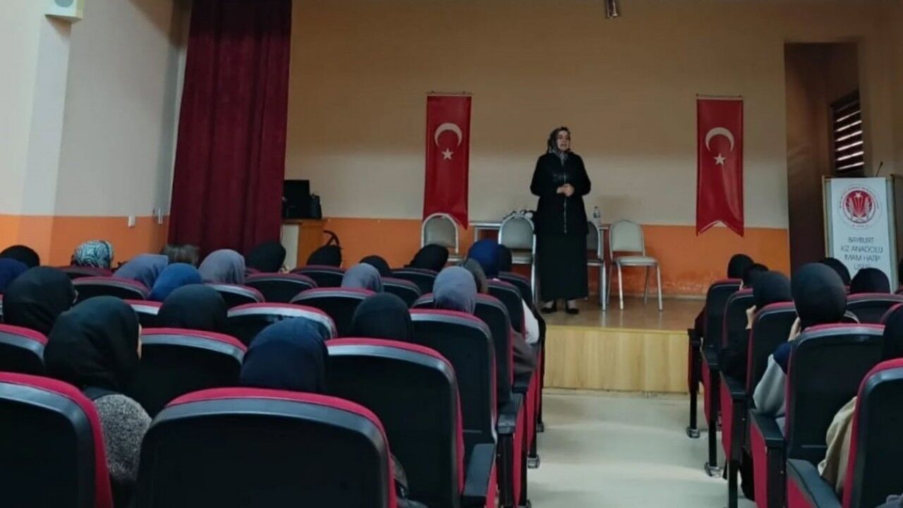 Bayburt İl Müftülüğünce, Mevlid-i Nebi Haftası dolayısıyla Kız Anadolu İmam Hatip Lisesinde ‘Peygamberimiz ve Aile Ahlakı’ konulu konferans düzenlendi. Konferansta öğrencilere, aile ahlakının önemi anlatıldı.