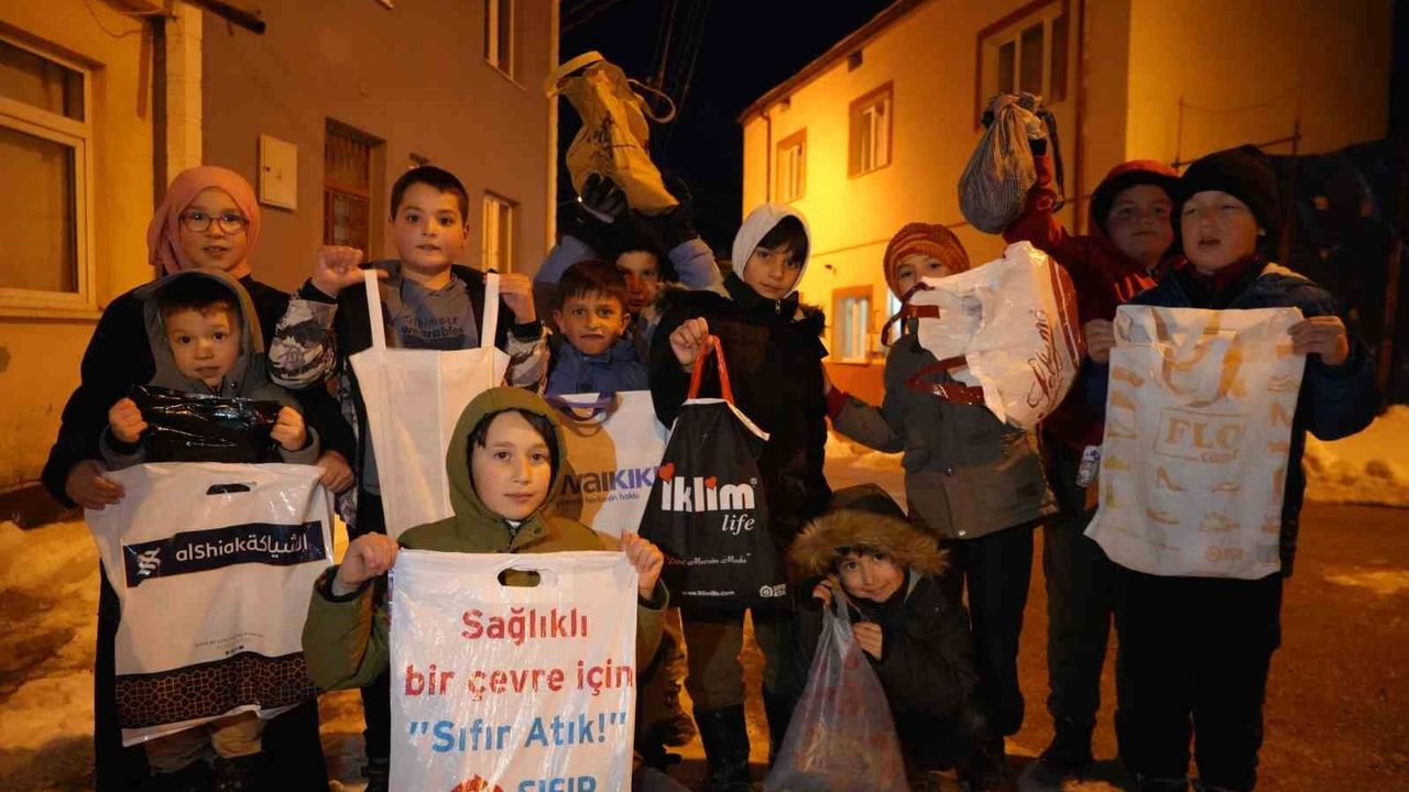 Çocuklar poşetlerini doldurdu