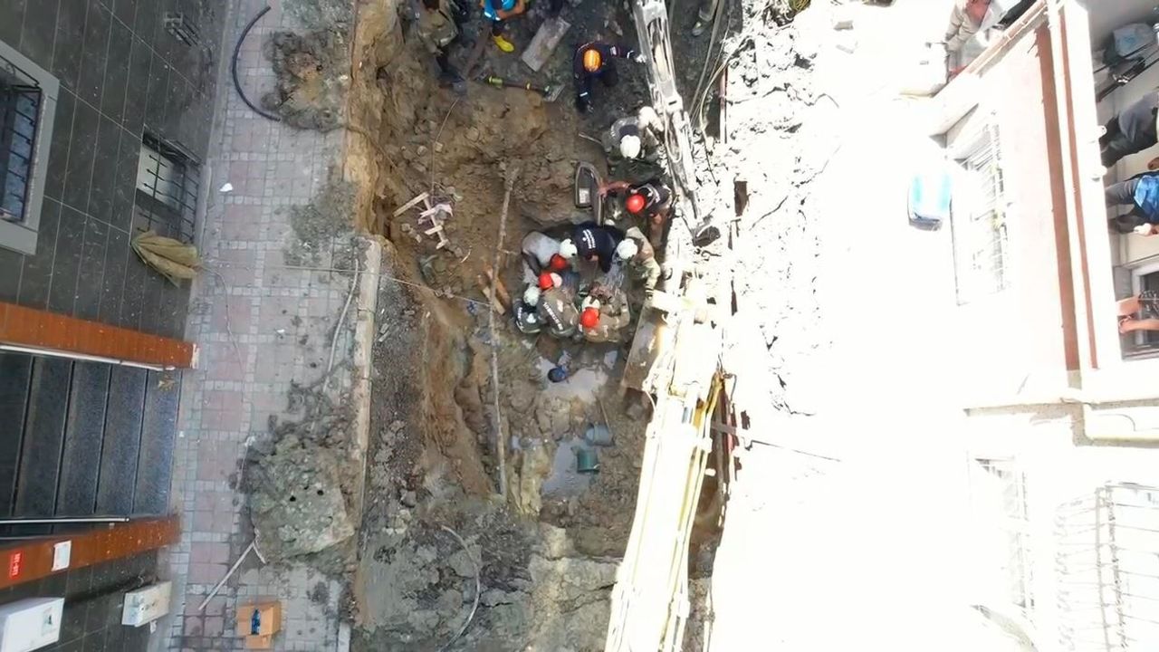 Öte yandan göçük sonrası çalışmanın yapıldığı cadde şerit çekilerek yaya ve araç trafiğine kapatıldı.