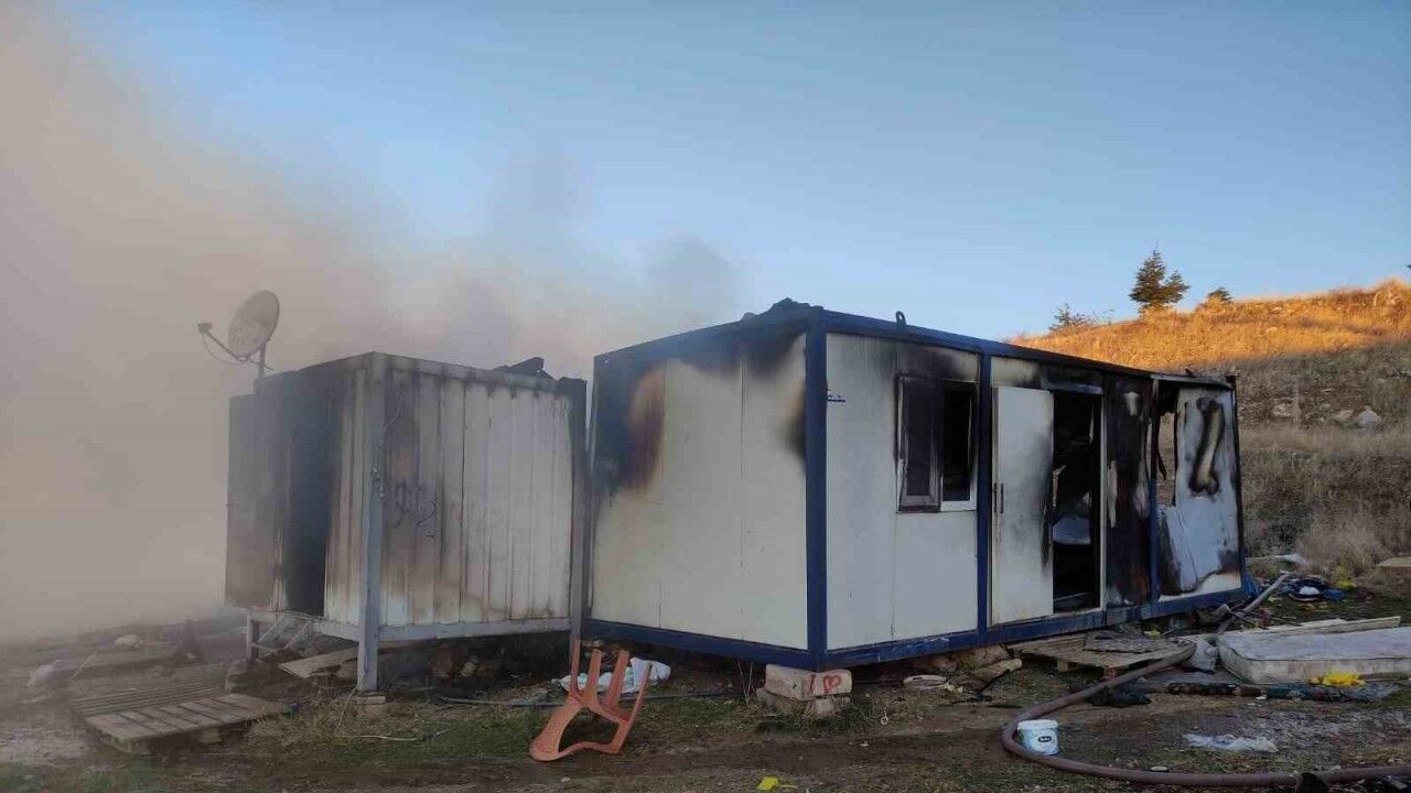 Kırşehir’de belediye katı atık ayrıştırma tesisi yanında bulunan ayrıştırma alanındaki işçilerin kaldığı konteynırda yangın çıktı.