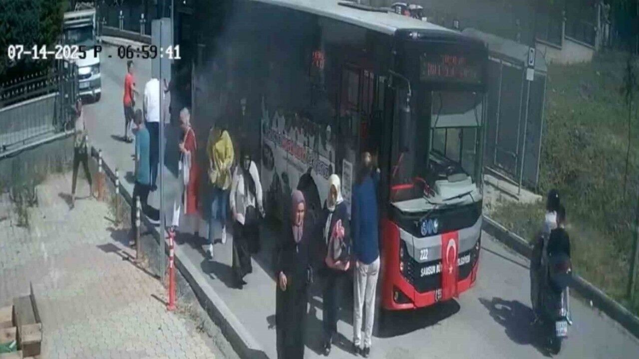 Samsun’un Atakum ilçesinde belediye otobüsünün alev aldığı ve yolcuların panikle kaçıştığı anlar kameraya yansıdı.