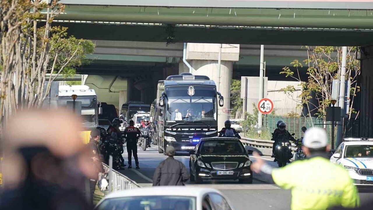 Trendyol Süper Lig’in 34. haftasında Beşiktaş, saat 19.00’da deplasmanda Fenerbahçe ile karşılaşacak. Ümraniye Nevzat Demir Tesisleri’nde derbi hazırlıklarını tamamlayan siyah-beyazlılar, takım otobüsüyle mücadelenin oynanacağı stada ulaştı. Beşiktaş kafilesi, yoğun güvenlik önlemleri altında stada giriş yaptı.