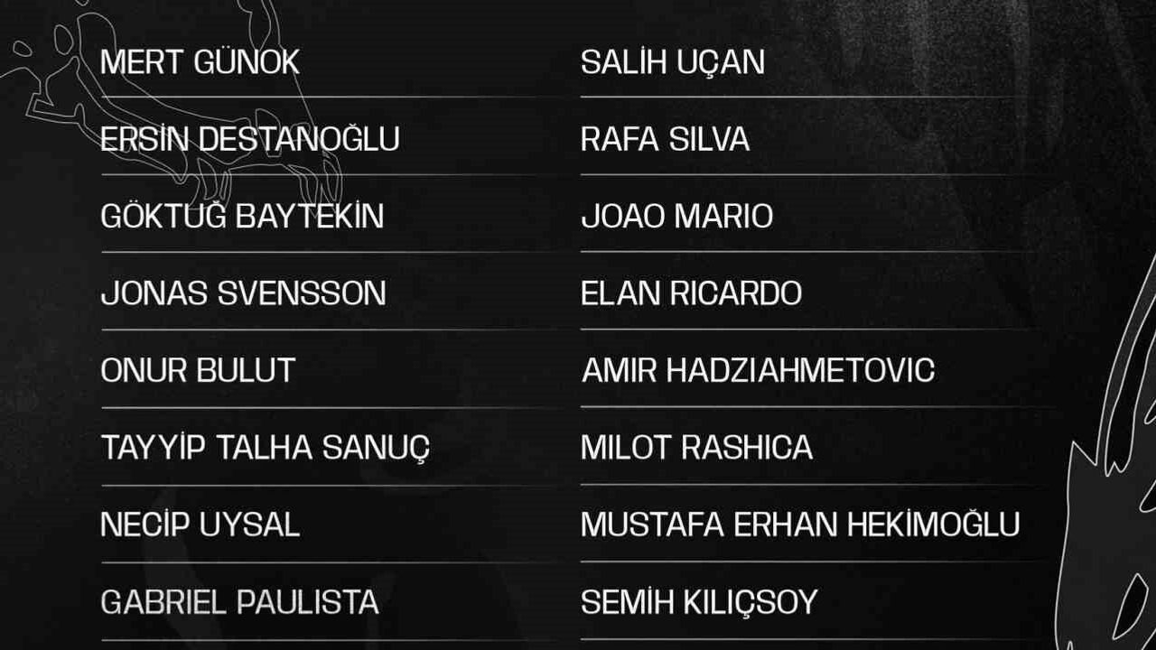 "Mert Günok, Ersin Destanoğlu, Göktuğ Baytekin, Jonas Svensson, Onur Bulut, Tayyip Talha Sanuç, Necip Uysal, Gabriel Paulista, Felix Uduokhai, Arthur Masuaku, Serkan Emrecan Terzi, Salih Uçan, Rafa Silva, Joao Mario, Elan Ricardo, Amir Hadziahmetovic, Milot Rashica, Mustafa Erhan Hekimoğlu, Semih Kılıçsoy, Ciro Immobile, Ernest Muçi ve Keny Arroyo."