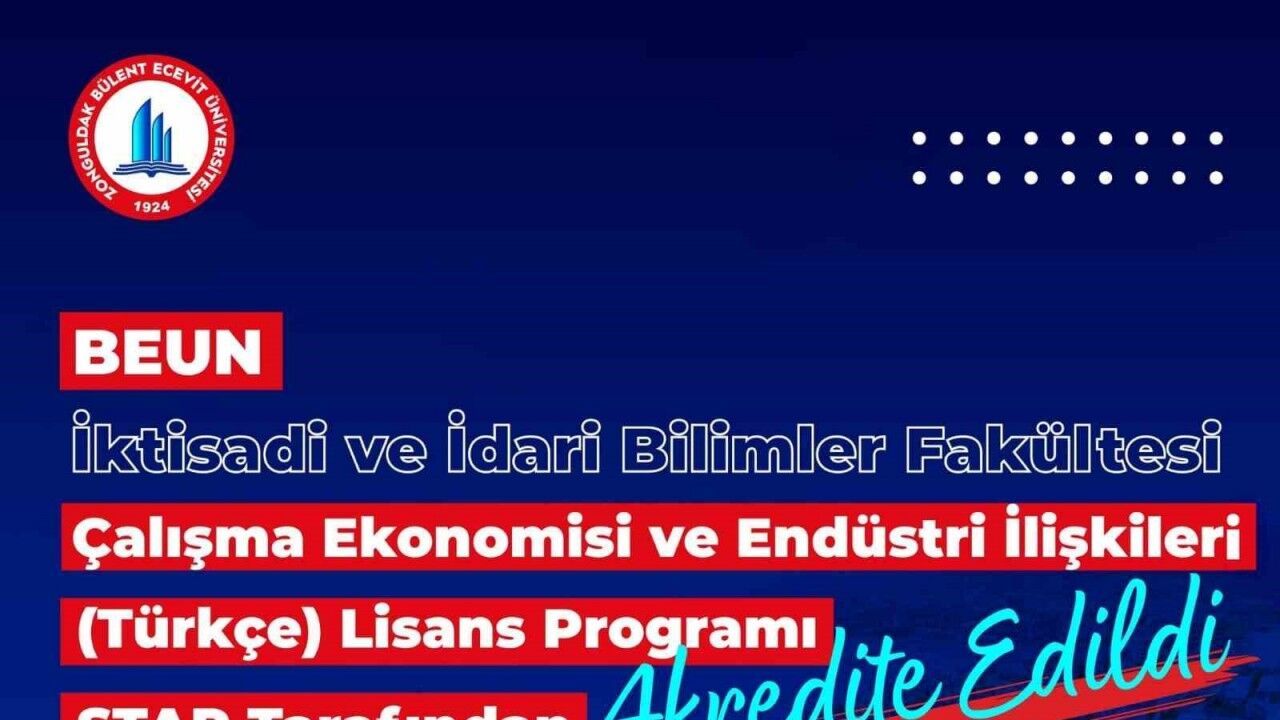BEUN İktisadi ve İdari Bilimler Fakültesi bünyesinde yer alan Çalışma Ekonomisi ve Endüstri İlişkileri (Türkçe) lisans programı, Sosyal Beşeri ve Temel Bilimler Akreditasyon ve Rating Derneği (STAR) tarafından 02 Haziran 2025 - 02 Haziran 2029 tarihleri arasında geçerli olmak üzere dört yıl süreyle tam akreditasyon aldı. Bu gelişmeyle birlikte Zonguldak Bülent Ecevit Üniversitesi, sürdürülebilir ve nitelikli eğitim anlayışı doğrultusunda önemli başarılara imza atarken, akademik programlarının ulusal ve uluslararası düzeydeki kalite standartlarını karşıladığını bir kez daha kanıtladı.