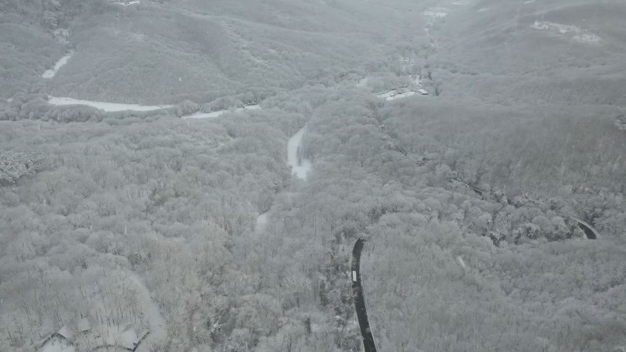 İstanbul Sarıyer'de etkili olan kar yağışı her yeri beyaz örtü ile kapladı. Kartpostallık manzara havadan görüntülendi.