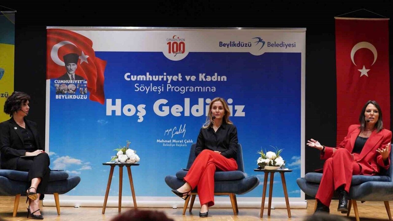 Beylikdüzü Belediyesi’nin Cumhuriyet’in 100. yılı etkinlikleri çerçevesinde düzenlediği ’Cumhuriyet ve Kadın’ söyleşisi, yoğun bir katılımla gerçekleşti. Gazeteci-Yazar Özlem Gürses’in moderatörlüğünde gerçekleşen söyleşide Zehra Çalık ve Ece Üner, Cumhuriyet’in kadınlar için önemine değindi.
