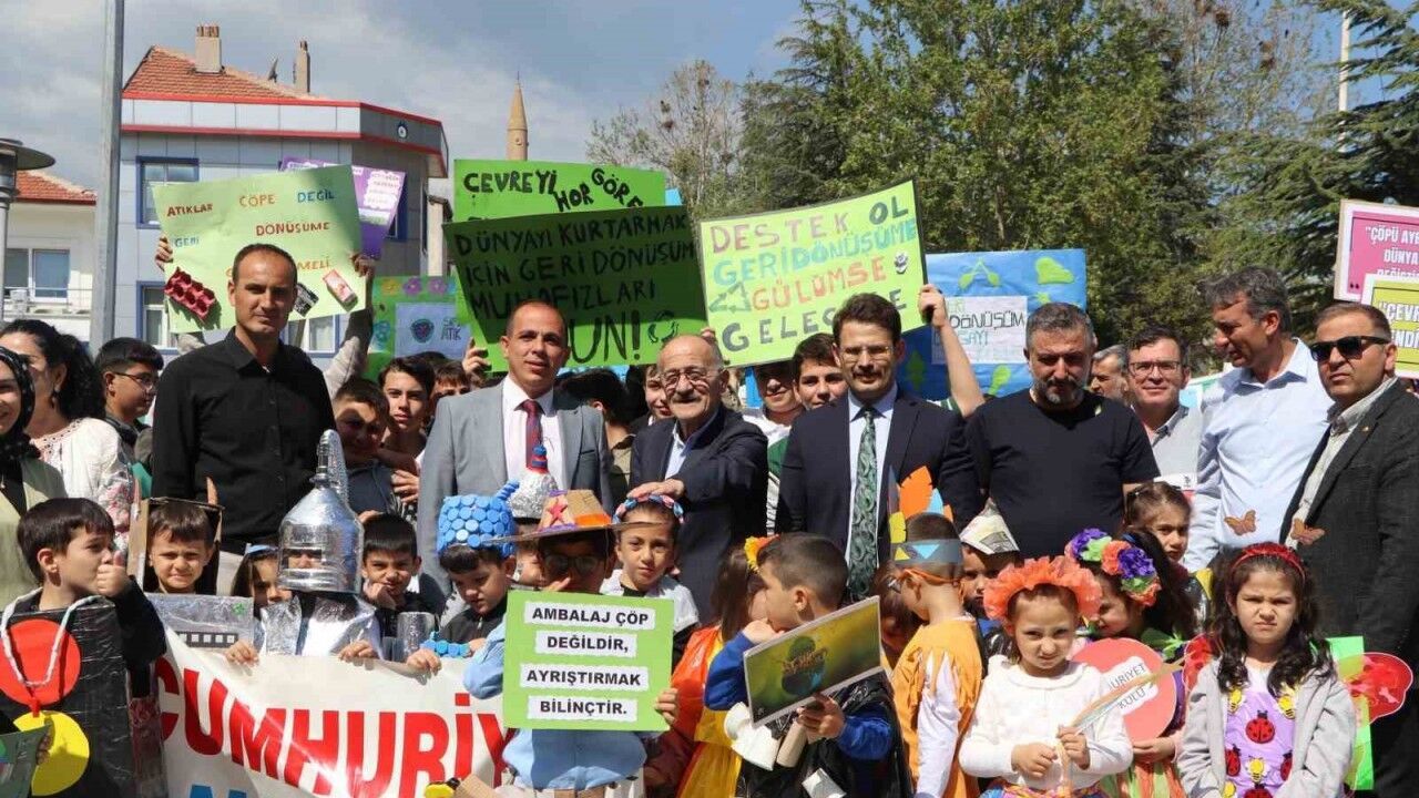Konya’nın Beyşehir ilçesinde farklı okullarda öğrenim gören öğrenciler düzenlenen etkinlikte temiz çevre için yürüyüş gerçekleştirdi.