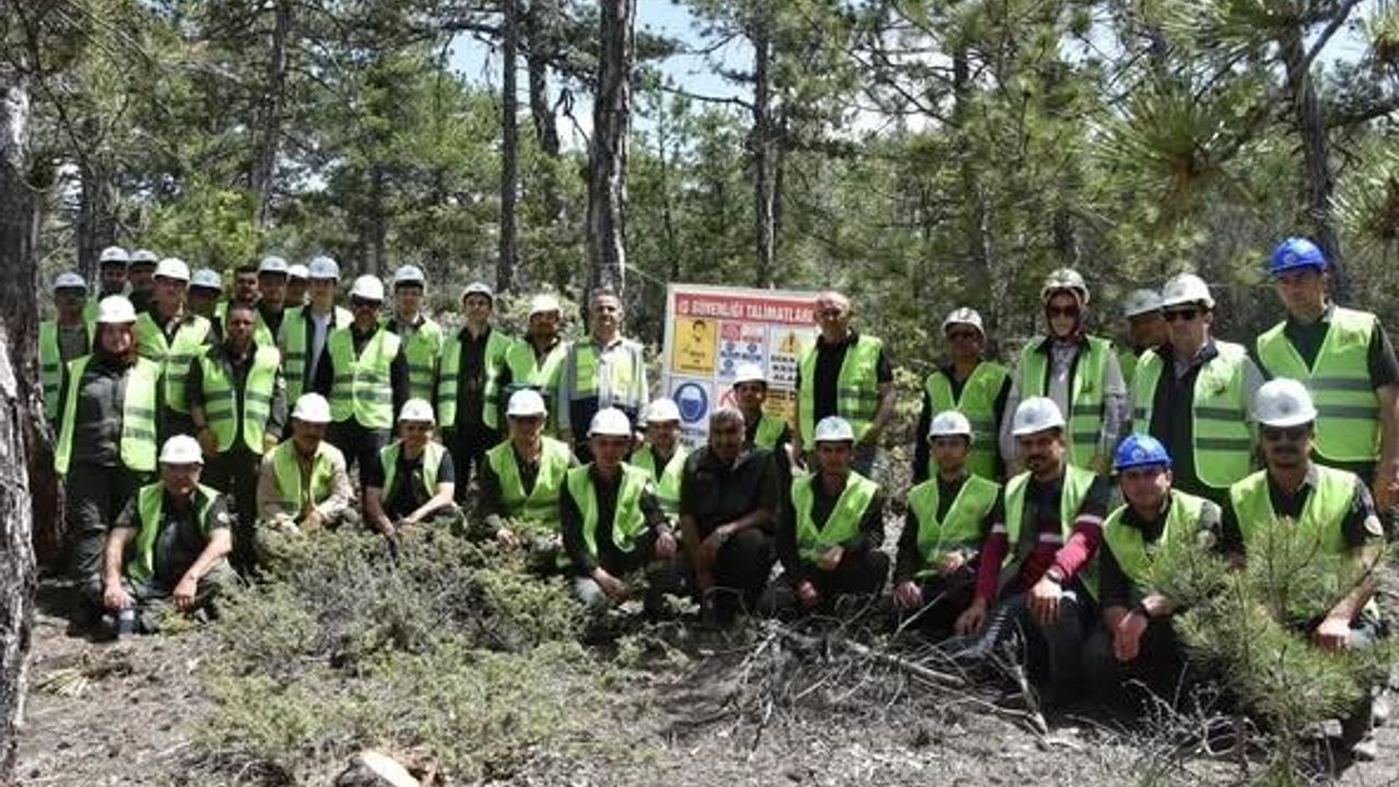 Konya’nın Beyşehir ilçesinde düzenlenen eğitime katılan orman muhafaza memurlarına ormanlık alanda ağaç kesme teknikleri, devirme tekniği, budama, kabuk soyma, sınıflandırma ve ölçüm esaslarına göre ağaçların nasıl boylanacağı bilgileri verildi.