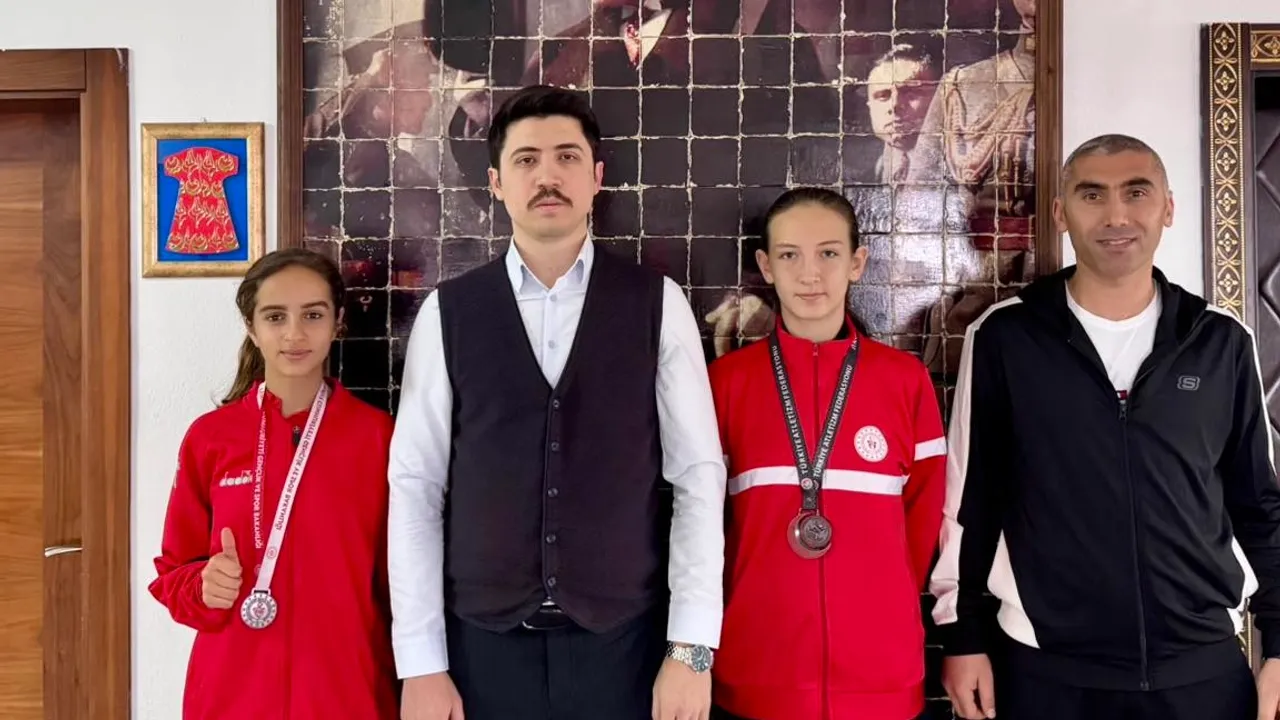 Bilecik’in Pazaryeri Kaymakamı Ahmed Tayyib Kahraman, ilçeyi gururla temsil eden başarılı sporcuları makamında ağırlayarak tebrik etti.Pazaryeri Gündem / BİLECİK (İGFA) - Bursa’da düzenlenen U16 Türkiye Salon Şampiyonası ve Bartın’da gerçekleştirilen Okullar Arası Kros Bölge Şampiyonası’nda dereceye giren genç sporcular Ecem Uygun ve Elif Fener, Kaymakam Kahraman’ın konuğu oldu.
