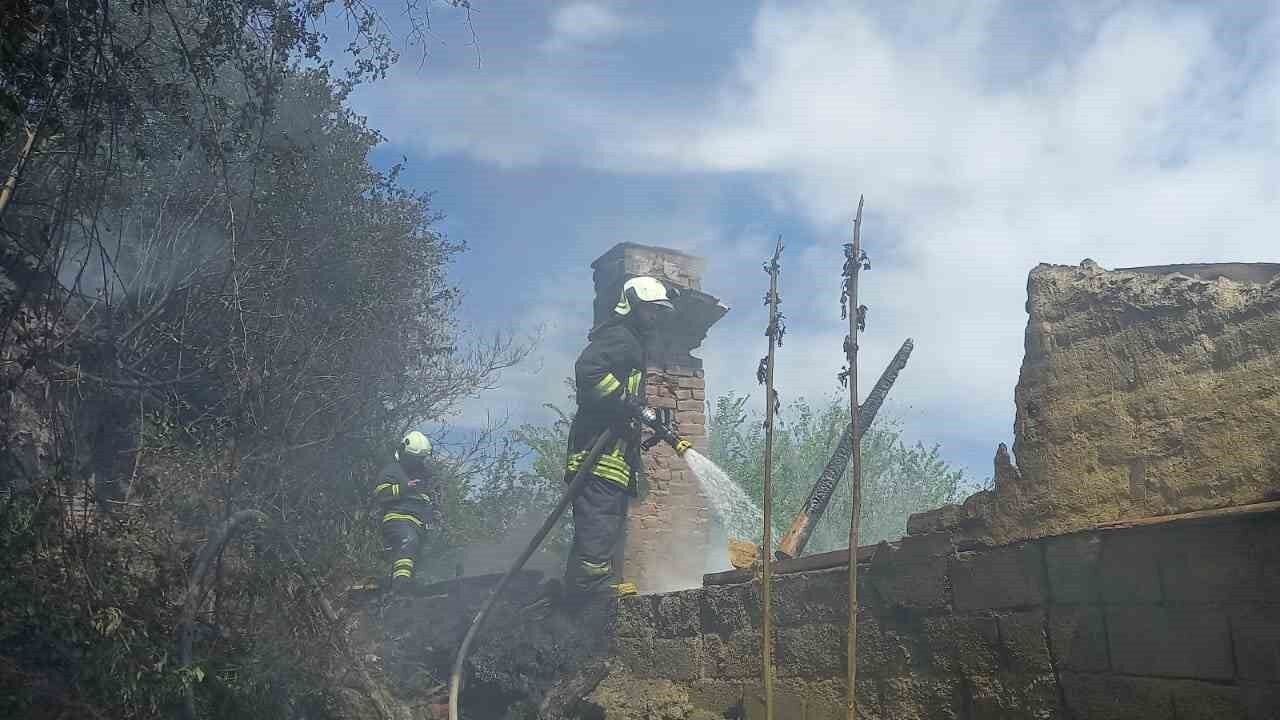 Karaköy köyünde Ü.A.’ya ait kerpiç evde henüz belirlenemeyen bir nedenle başlayan yangın kısa sürede tüm yapıyı sardı.