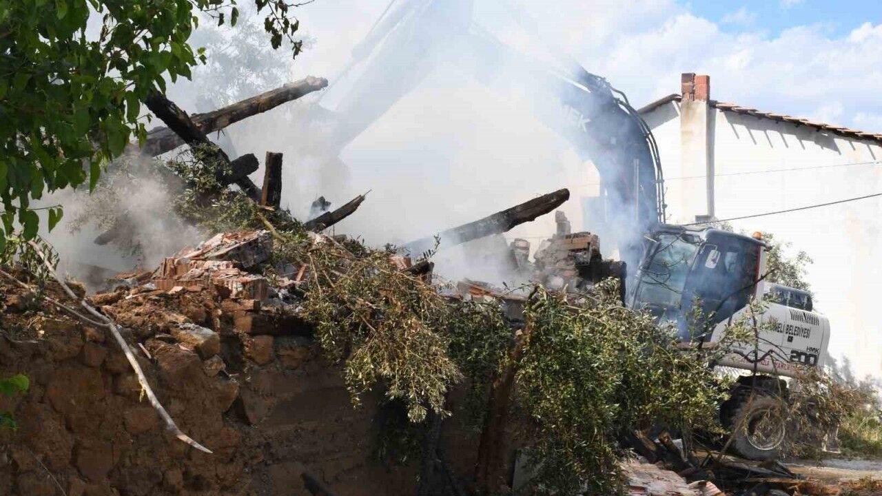 Bilecik’in Osmaneli ilçesine bağlı Camicedit Mahallesi Asımbey Sokak üzerinde kullanılmayan 3 katlı metruk evden dumanları yükseldiğini gören çevre sakinleri durumu hemen 112’ye haber verdi. Olay yerine Osmaneli Belediyesine ait itfaiye ekipleri sevk edilirken, metruk bina kepçe yardımıyla yıkılarak yangın söndürüldü.