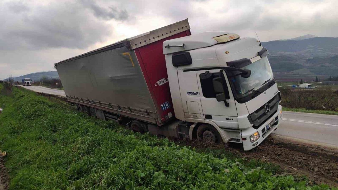 Bilecik'in Osmaneli ilçesinde direksiyon hakimiyetini kaybeden tırın şarampole düşmesi sonucu trafik kazası meydana geldi.