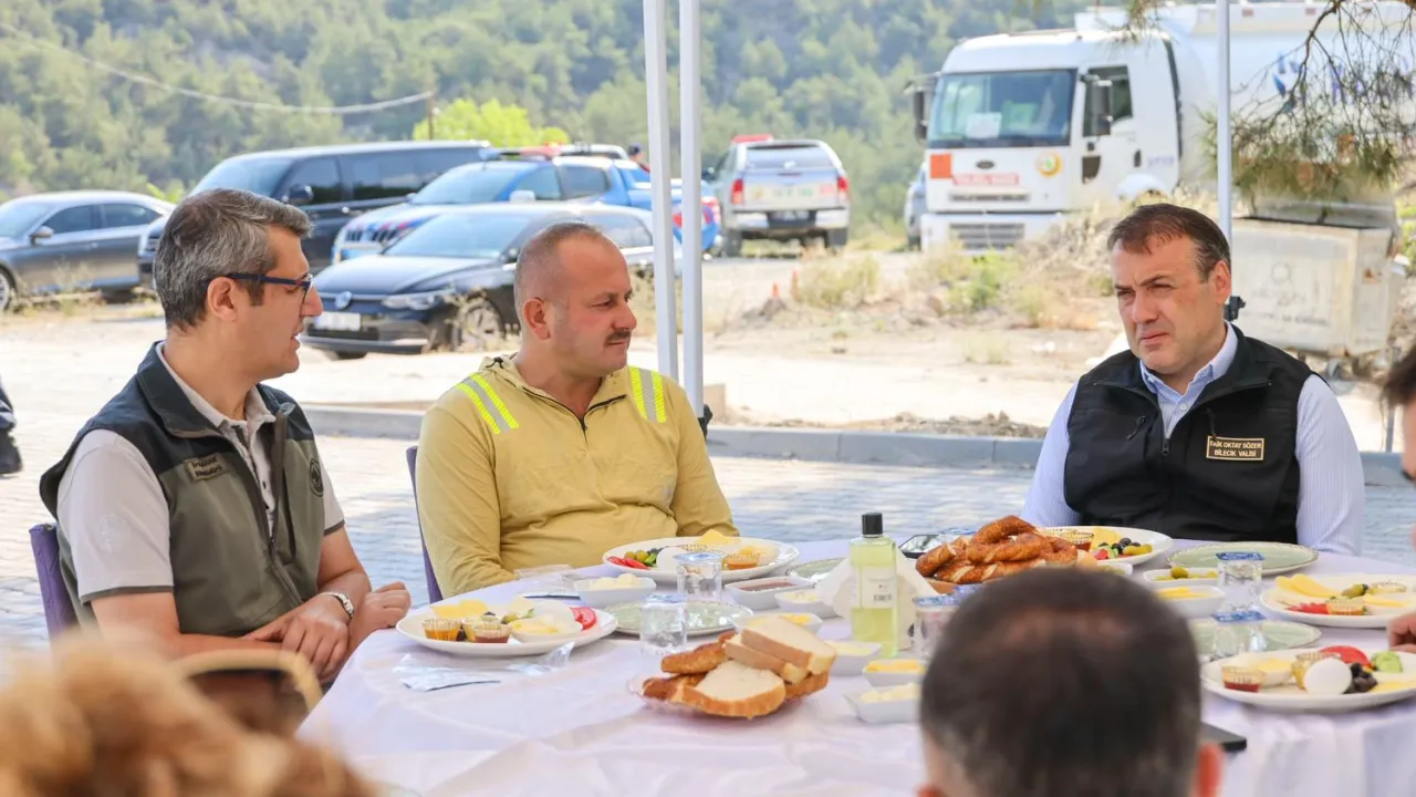 Bilecik Valisi Faik Oktay Sözer, orman yangınlarıyla mücadelede aktif görev alan ekiplerle bir araya gelerek yürütülen çalışmalar hakkında bilgi aldı.BİLECİK (İGFA) - Bilecik'te orman teşkilatı personeliyle sahada bir araya gelen Vali Sözer, yangın sezonunda büyük bir özveriyle görev yapan kahramanlara teşekkür etti. Orman yangınlarına karşı verilen mücadelenin sadece ağaçları değil; aynı zamanda doğayı, canlıları ve geleceğimizi koruma anlamı taşıdığını ifade eden Vali Sözer, “Yeşil Vatan’ı korumak için canla başla mücadele eden kahramanlarımızın her biri birer isimsiz kahramandır. Devletimizin tüm imkânlarıyla yanlarında olmaya devam edeceğiz.” dedi.