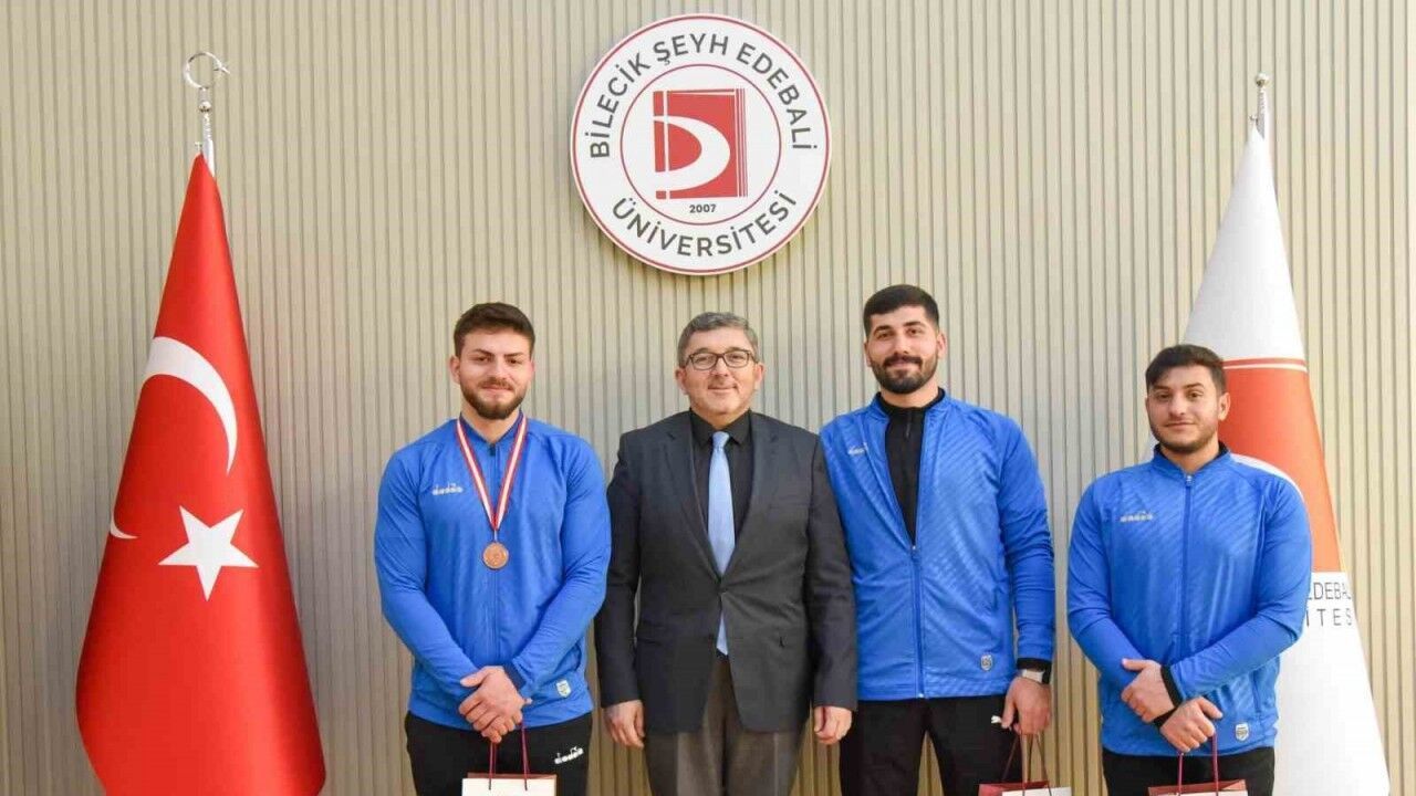 Şampiyonadaki başarının ardından Ensar Abanoz, antrenörü ve sporcu arkadaşlarıyla birlikte Rektör Prof. Dr. Zafer Asım Kaplancıklı’yı makamında ziyaret etti. Rektör Kaplancıklı, öğrencinin elde ettiği başarının BŞEÜ adına büyük bir gurur kaynağı olduğunu ifade ederek, Ensar Abanoz’u ve emeği geçen tüm sporcuları tebrik etti. Rektör Kaplancıklı, sporcu öğrencilere hediye takdim ederek başarılarının devamını diledi.