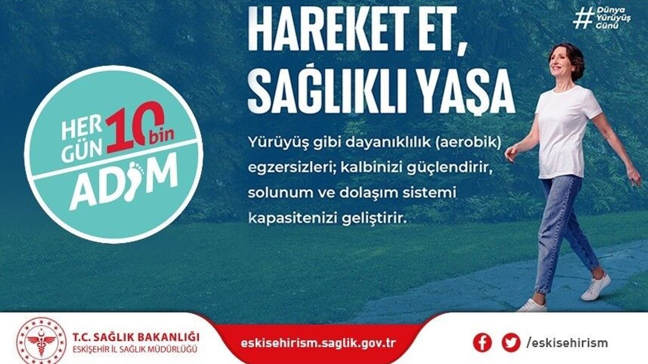 Eskişehir İl Sağlık Müdürü Prof. Dr. Uğur Bilge, ’1-2 Ekim Dünya Yürüyüş Günü’ nedeniyle yapmış olduğu açıklamada, "Fiziksel hareketsizlik dünya genelindeki ölümlerin dördüncü önde gelen risk faktörü olarak belirlenmiştir" dedi.