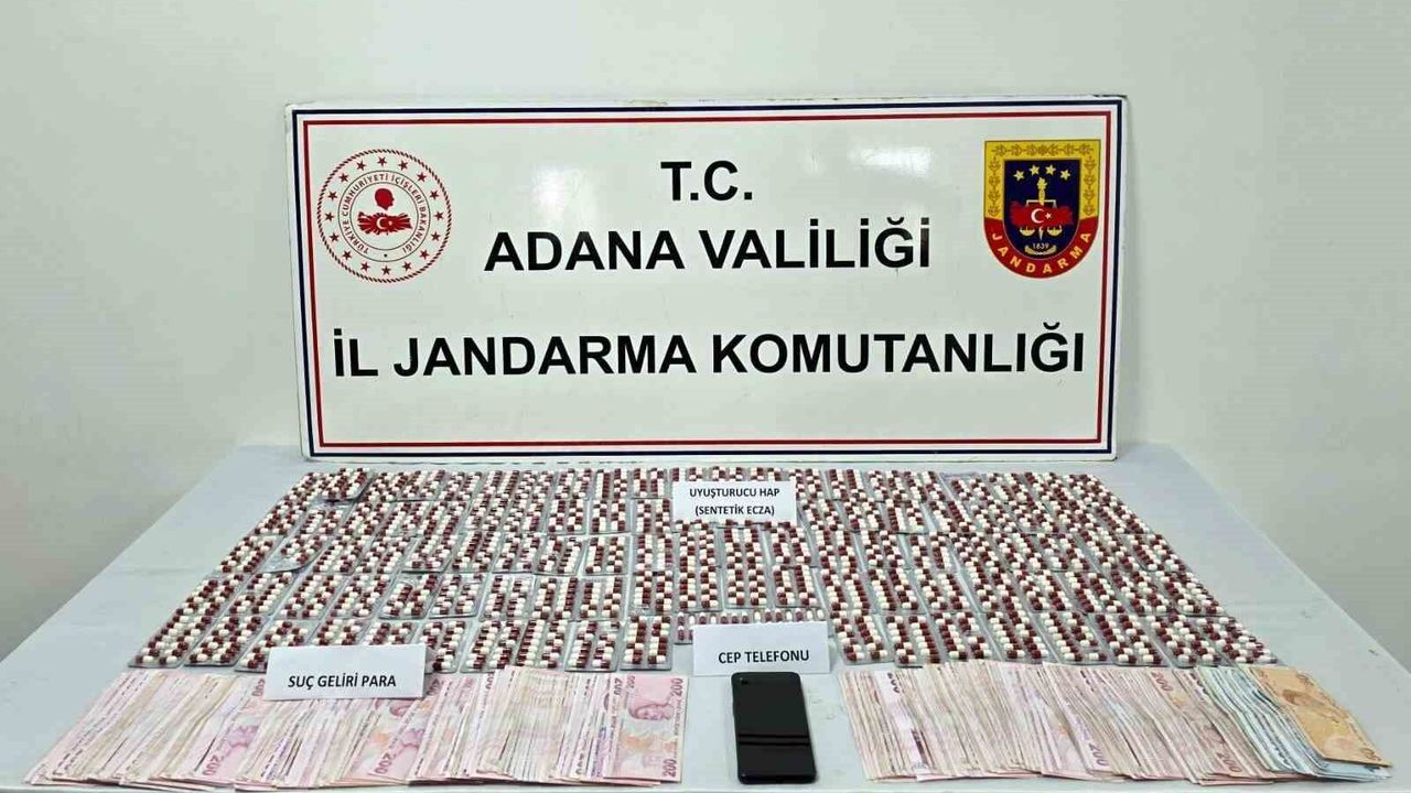 Adana'da uyuşturucu operasyonunda yakalanan şüpheli tutuklanırken operasyonda bin 433 sentetik ecza ele geçirildi.