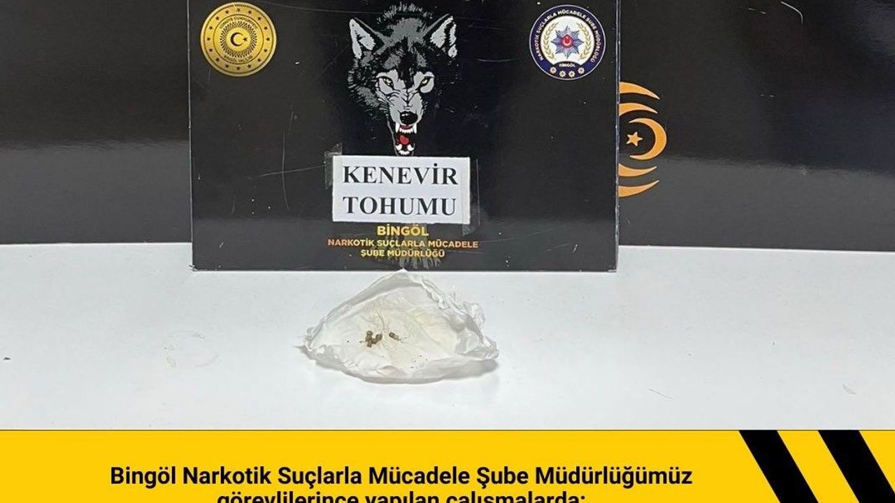 Bingöl Emniyet Müdürlüğü Asayiş ve Narkotik Şube Müdürlüğü ekiplerince uygulama gerçekleştirildi. Uygulamalarda 2 adet bıçak ile 0.57 gram Hint keneviri tohumu ele geçirildi. 2 şahıs hakkında adli işlemlere başlandı.