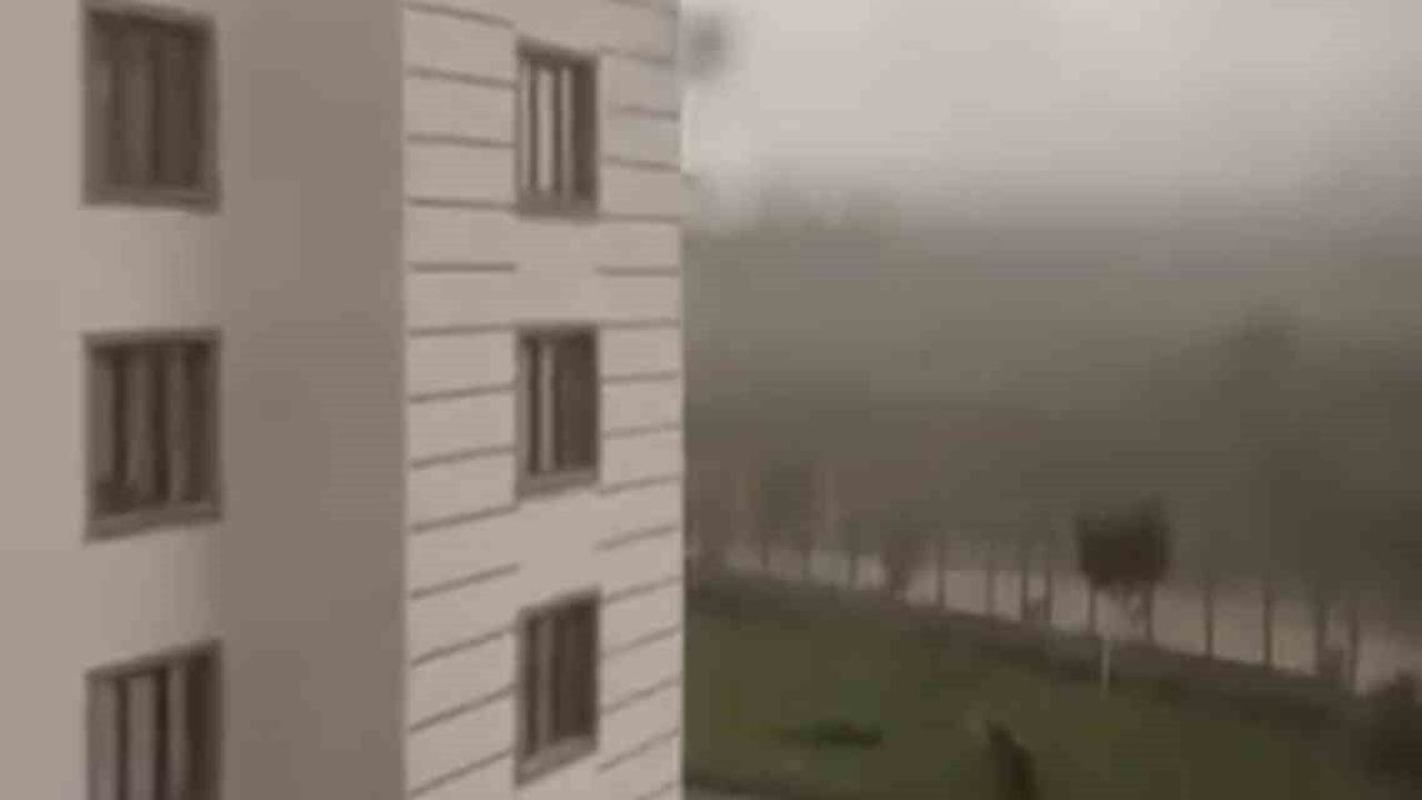 Bingöl’de etkili olan fırtına birçok evin çatısını uçurken, uçan bir parça ise çocuğun üzerinde geldi. O anlar cep telefonu kamerasına yansıdı.