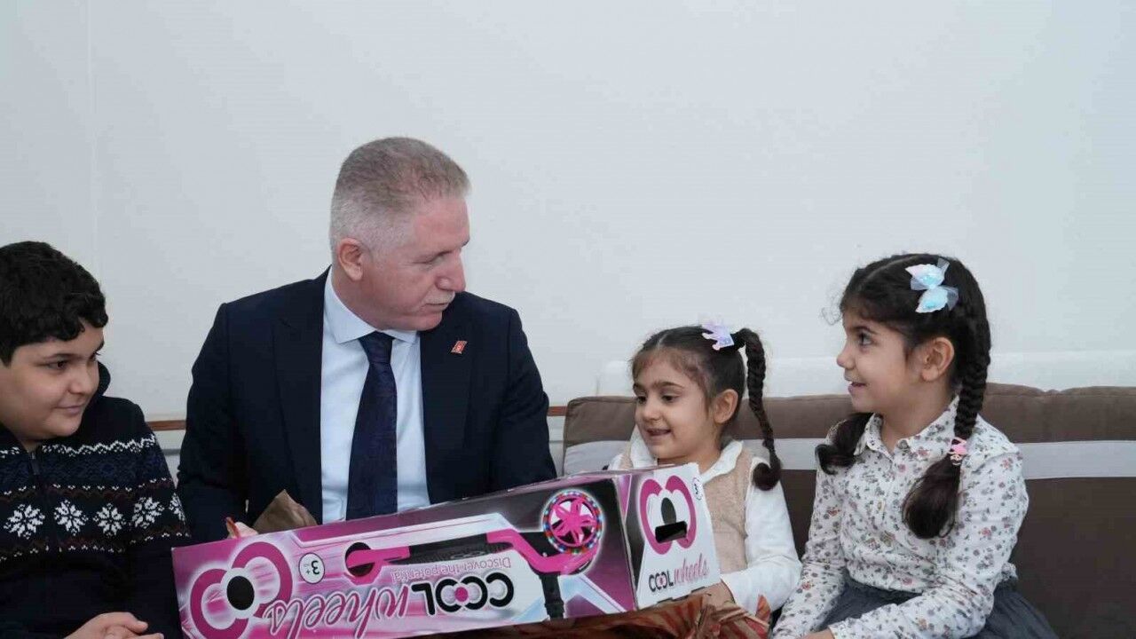 Vali Gül’ün “Bir çocuk bir dilek” projesi kapsamında ikinci adresi ise, babalarını 2016 yılında kaybeden Tuba (15), Muhammed (13), Serhat (12) ve Hira Nur (8) kardeşlerin evi oldu. Onlar da çeşitli dileklerini ileterek projeye katılmıştı. Anneleriyle birlikte yaşayan dört kardeş, aldıkları hediyelerle büyük mutluluk yaşadı. Vali Gül, ziyaretlerini Mehmet Efe (11), Zemzem (8), Zeynep Su (6) ve Züleyha (4) kardeşleri ziyaret ederek tamamladı.
