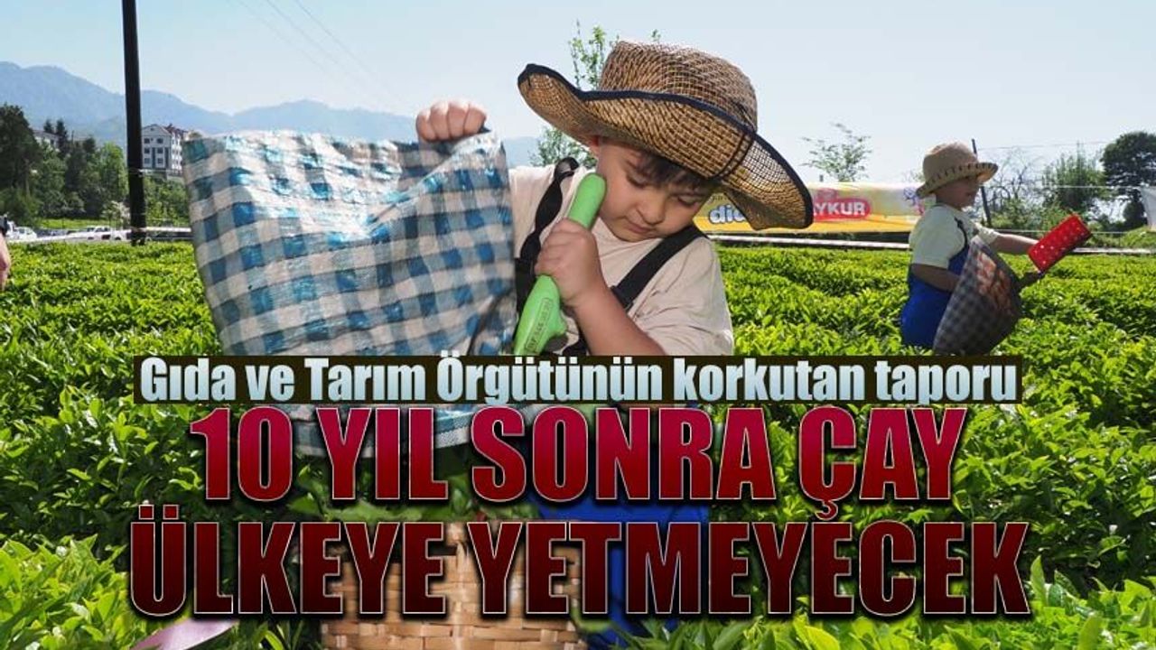 Birleşmiş Milletler (BM) Gıda ve Tarım Örgütünün yayımladığı rapora göre Türkiye'de yaklaşık 270 bin ton olan kuru çay tüketiminin 10 yıl sonra 400 bin tona çıkacak. Sektör bugün ki şartlarda ileride iç tüketime yetmeyebilir Bu durumda günlük çay tükemimizi daraltmak zorunda kalabiliriz.Rapora göre yıllık ortalama yüzde 4,9 artan çay tüketim artışı 10 yıl sonra yüzde 3.3 'e inecek ancak nufüs artış hızı göz önüne alındığında çay tüketimi artacak.Çayın bugün ki şartlarıyla 10 yıl sonra iç tüketimi karşılayamayacağını ve günlük çay tüketimimizi daraltmak zorunda kalableceğimizi vurgulayan yetkililer sektörün bu yönde hazırlanması gerektiğini söylüyor.