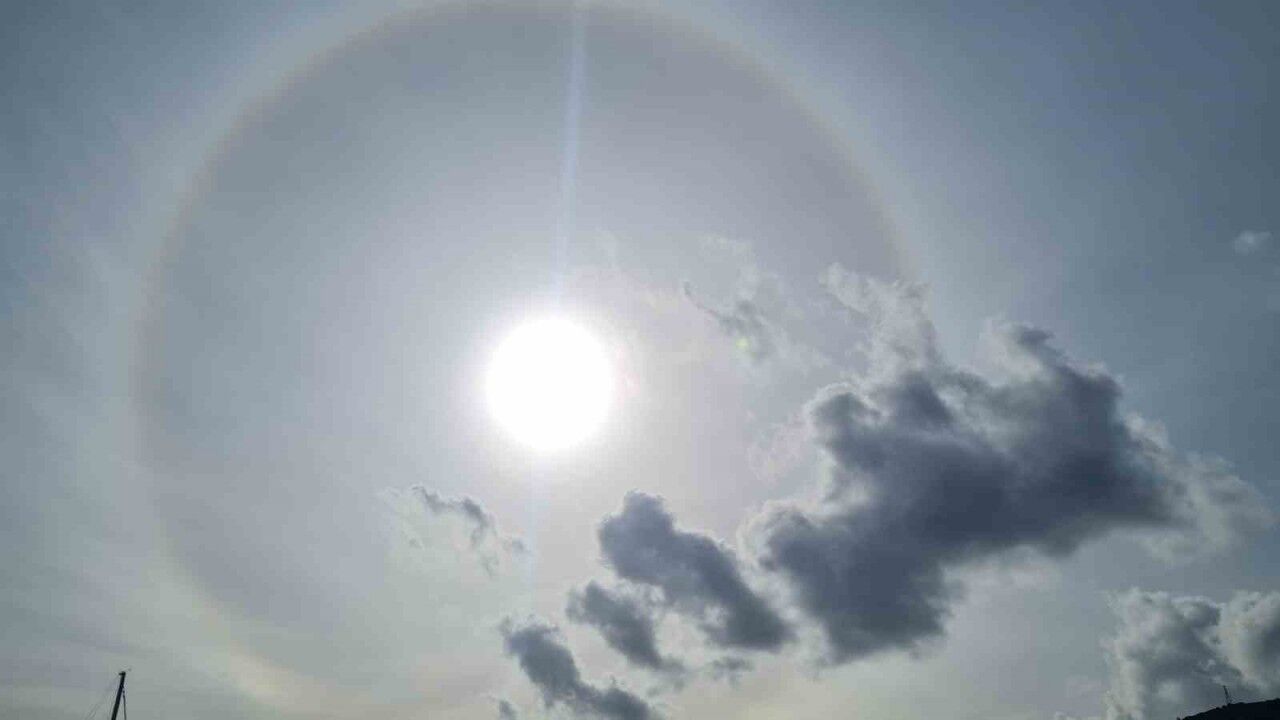 Güneş ışınlarının havadaki buz kristalleri tarafından kırılmasıyla oluşan hale, uzun süre Bodrum semalarında izlendi. O anlar, sosyal medya hesaplarından paylaşıldı.
