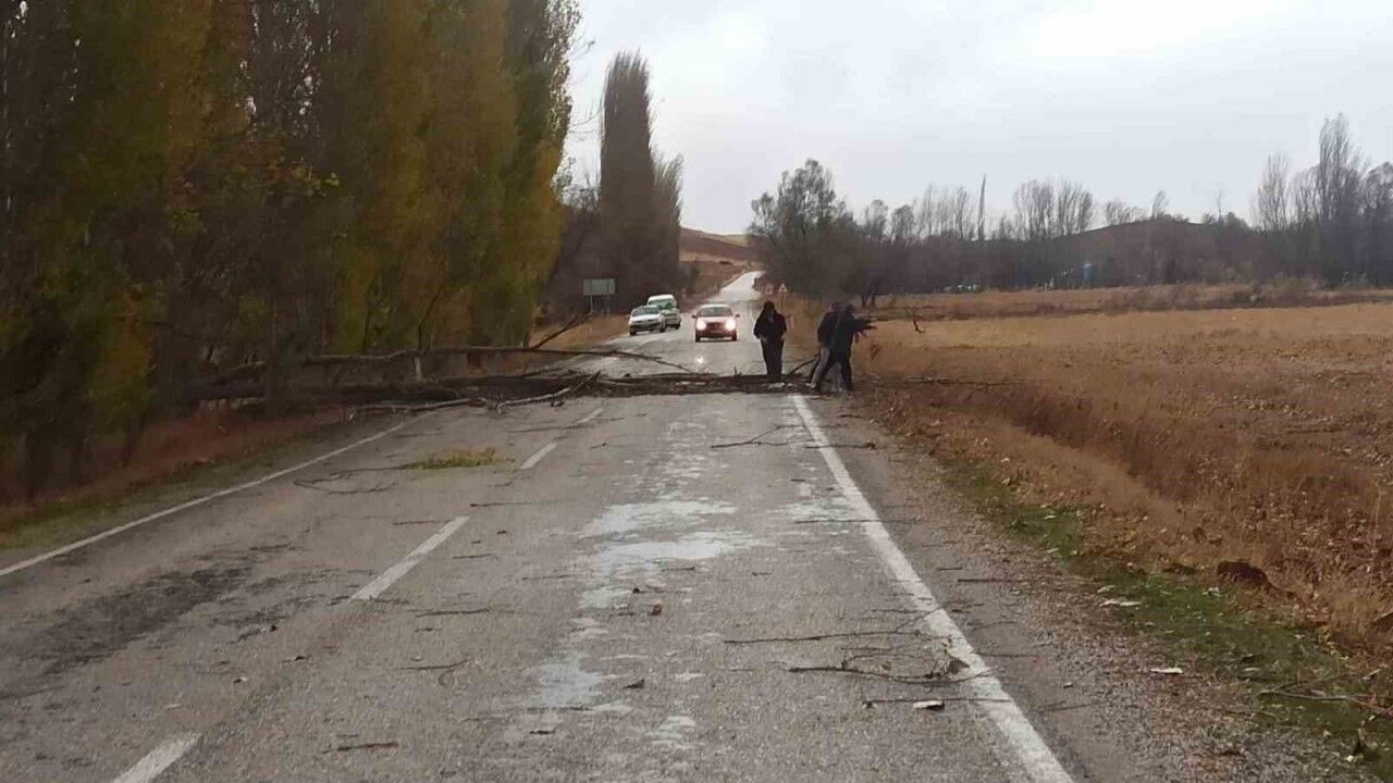 Çorum’un Boğazkale ilçesinde, etkili olan kuvvetli rüzgar nedeniyle ağaçlar devrildi.