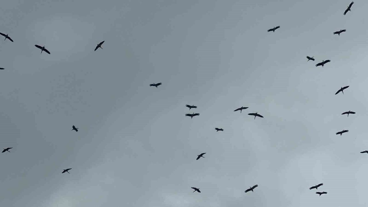 Bursa'ya Kestel ilçesi tarafından Gölbaşı üzerinden giren leylek sürüsü, yağmura rağmen yoluna devam etti.