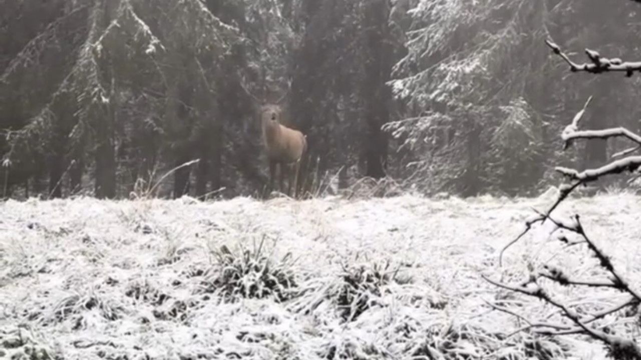 Bolu’nun karla kaplı ormanlarında karların arasından yavaş adımlarla ilerlerleyen kızılgeyik böğürme anlarıyla vatandaş kamerasına yansıdı.