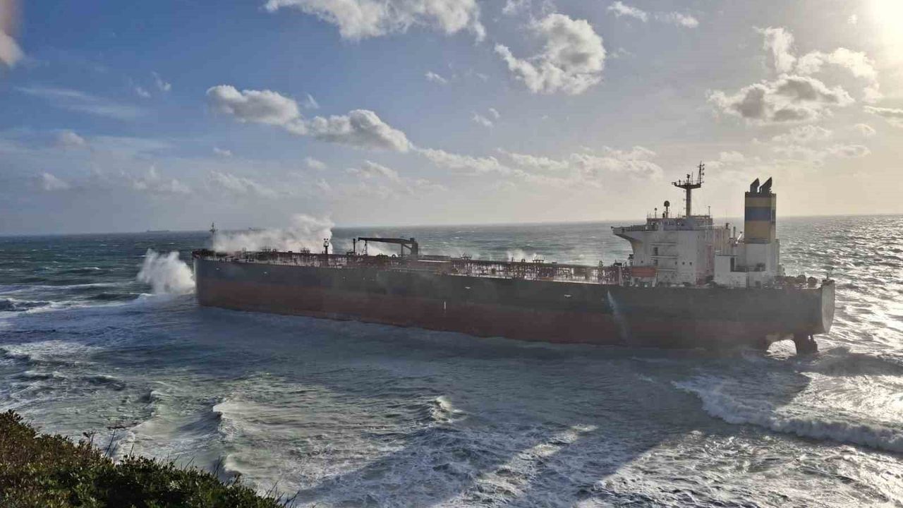 Çanakkale'nin Bozcaada ilçesi açıklarında seyir halinde olan 'QENDIL' isimli boş ham petrol tankeri lodos fırtınası nedeniyle karaya oturdu.