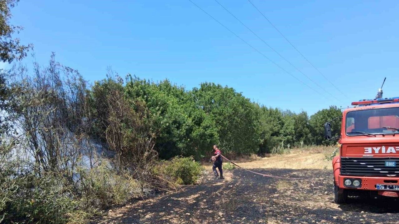 Edinilen bilgiye göre, Kılavuzlar Mahallesi’nde bugün henüz belirlenemeyen bir nedenle arazi yangını çıktı. Rüzgarın etkisiyle kısa sürede yayılan yangın, çevredeki incir ağaçlarına da zarar verdi. Yangını fark eden vatandaşların ihbarı üzerine Aydın Büyükşehir Belediyesi İtfaiye ekipleri hızla olay yerine sevk edildi. Ekiplerin zamanında müdahalesiyle alevlerin büyümesi önlendi. Yangın söndürme çalışmalarına mahalle sakinleri de destek verirken, ekipler soğutma çalışmalarını sürdürüyor. Yangının çıkış nedeni ile ilgili inceleme başlatıldı.