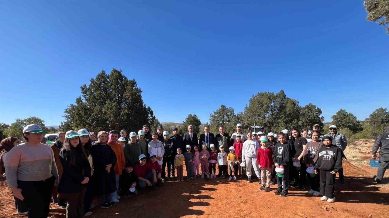 Konya’nın Bozkır ilçesinde, "Yeşil Vatan-Benim Okulum Geleceğe Çare" projesi kapsamında öğrenciler fidan dikti.