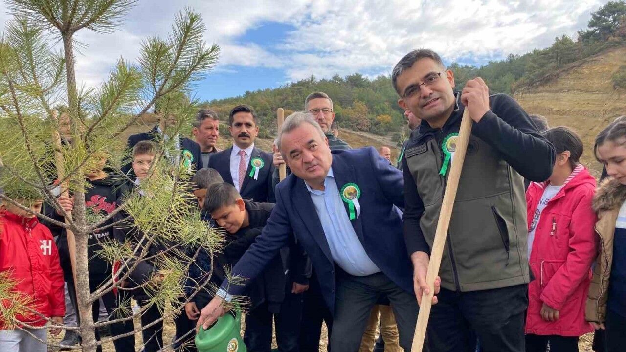 Bilecik’in Bozüyük ilçesinde yeşil vatanın yeni fertlerini toprakla buluşturmak üzere 11 Kasım Milli Ağaçlandırma Günü dolayısıyla Tarım ve Orman Bakanlığı’nın koordinasyonunda 81 il ile birlikte eş zamanlı olarak fidan dikim etkinliği düzenlendi.