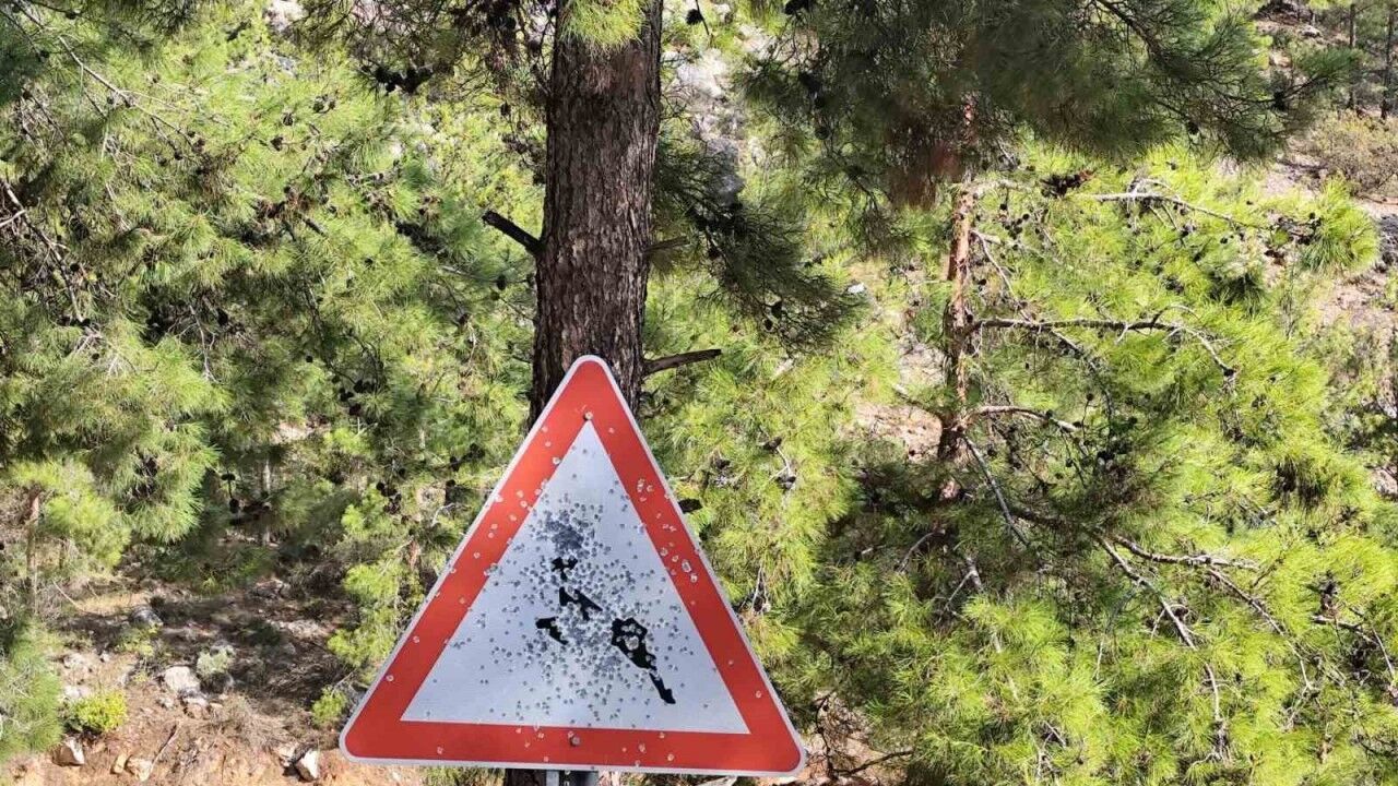 Mersin’in Bozyazı ilçesinde, yayla yolu güzergahında yer alan bazı trafik levhalarının kimliği belirsiz kişi ya da kişilerce kurşunlanarak tahrip edildiği ve üzerine yazılar yazıldığı belirlendi.