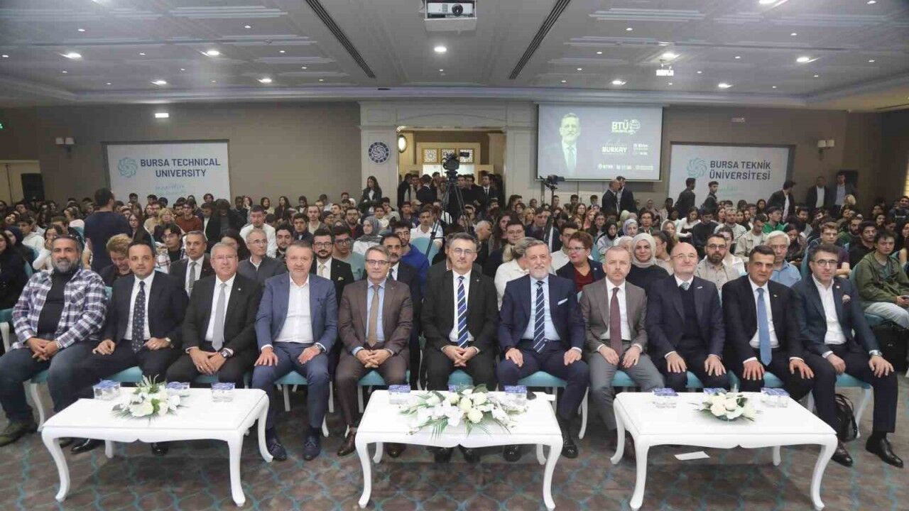 Bursa Teknik Üniversitesi (BTÜ) öğrencilerini her hafta çarşamba ilham veren konuklar ile buluşturan BTÜ Konuşmaları’nın 5. Sezon 43’ncü bölüm konuğu, Bursa Ticaret ve Sanayi Odası (BTSO) Başkanı İbrahim Burkay oldu. Mimar Sinan Yerleşkesi Turkuaz Salon’da gerçekleşen programa; BTÜ Rektörü Prof. Dr. Naci Çağlar, Yıldırım Kaymakamı Metin Esen, Nilüfer Kaymakamı Murat Süzen, BTSO yönetim kurulu üyeleri, iş dünyasından temsilciler, akademisyenler ve öğrenciler katıldı. "Bursa Büyürse Türkiye Büyür" başlıklı konuşmasını yapan İbrahim Burkay, Bursa’nın sadece bir sanayi kenti değil; aynı zamanda geleceğe yön veren projelerin de merkezi olduğunu söyledi. İbrahim Burkay, 60 bin üyeli BTSO’nun; TEKNOSAB, Türkiye’nin ilk uzay temalı eğitim merkezi GUHEM, iş dünyasının yeni eğitim üssü Bursa Business School ve BTSO Eğitim ve Teknoloji Merkezi gibi önemli projeleri hayata geçirdiğini belirtti.