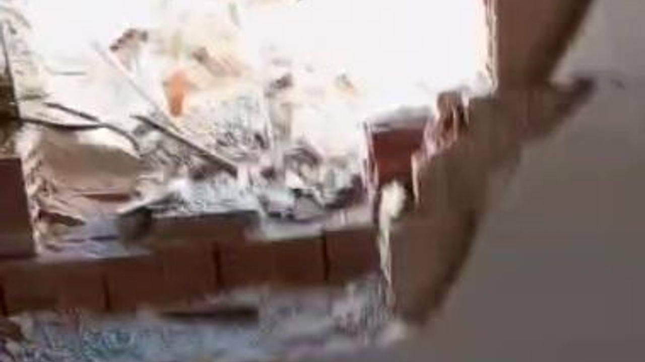 Elazığ’da iş makinesi yardımı ile ağır hasarlı bir bina yıkılırken, bitişikte bulunan sağlam binada zarar gördü. Sağlam binanın duvarları yıkılırken, operatör hiçbir şey olmamış gibi çalışmaya devam etti.