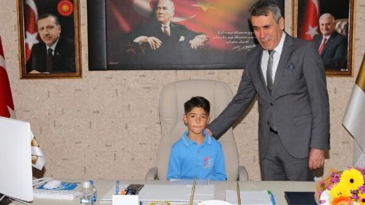 ANTALYA, () - BURDUR'un Bucak ilçesinde 23 Nisan Ulusal Egemenlik ve Çocuk Bayramı dolayısıyla Belediye Başkan Vekili Kaymakam Yalçın Sezgin, makamını Fatih Sultan Mehmet İlkokulu öğrencisi Hüseyin Üstün'e devretti.