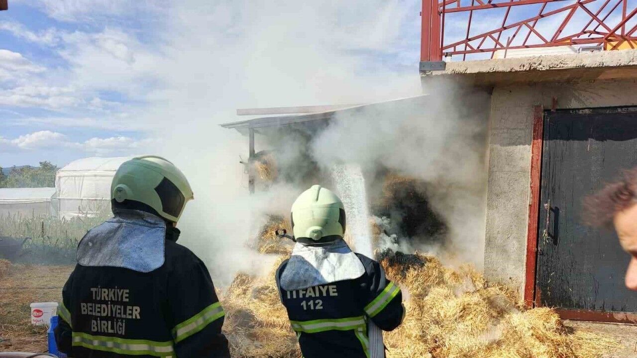 Burdur’un Bucak ilçesinde çıkan yangında ot balyaları yandı.