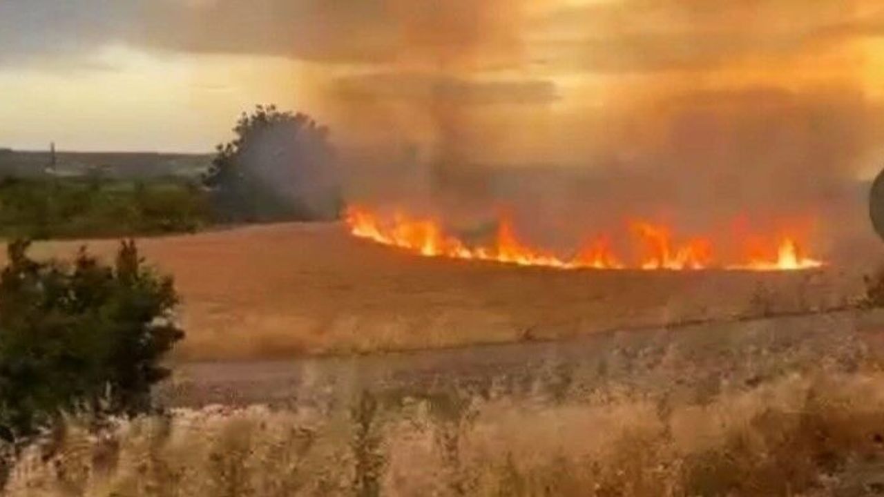 Edirne’de aniden alev alan buğday tarlası saniyeler içinde küle döndü.