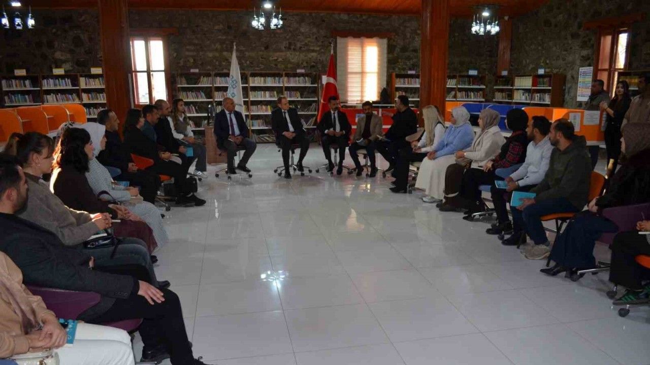 MUŞ (İHA) – Muş’un Bulanık İlçe Kaymakamı Ömer Övünç Koşansu "Bulanık Kütüphane Buluşmaları" çerçevesinde öğretmenlerle kütüphane söyleyişi gerçekleştirdi.