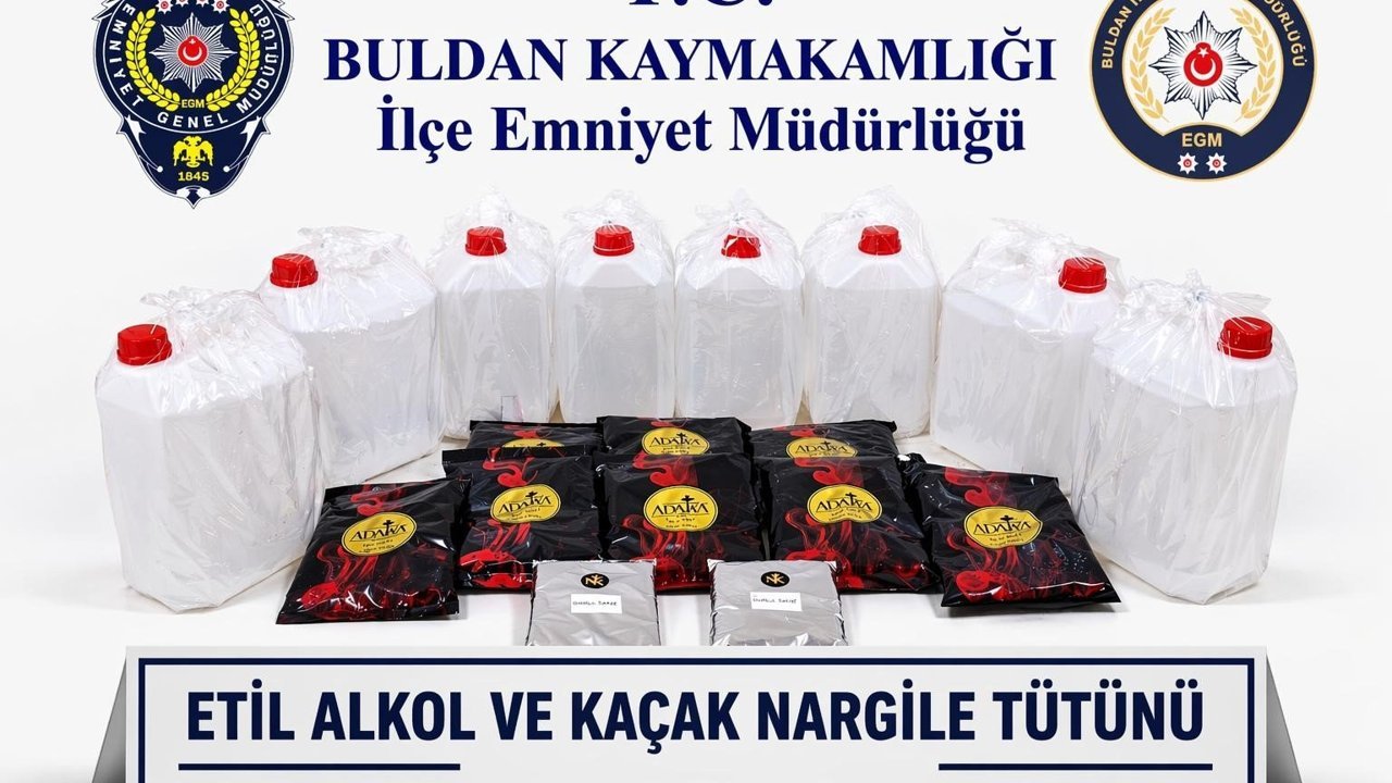 Denizli'nin Buldan ilçesinde İlçe Emniyet Müdürlüğü ekipleri, ilçeye farklı illerden kaçak alkol yapımında kullanılan etil alkol ve kaçak nargile tütünü getirildiği bilgisi üzerine harekete geçti. Yapılan çalışma kapsamında şüpheli şahsa yönelik operasyon düzenlendi. Operasyonda şüphelinin yanında bulunan paketlerde yapılan aramalarda 40 litre etil alkol ile 9 kilo kaçak nargile tütünü ele geçirildi. Ele geçirilen kaçak ürünlere el konulurken, şüpheli şahıs hakkında yasal işlem başlatıldığı öğrenildi.
