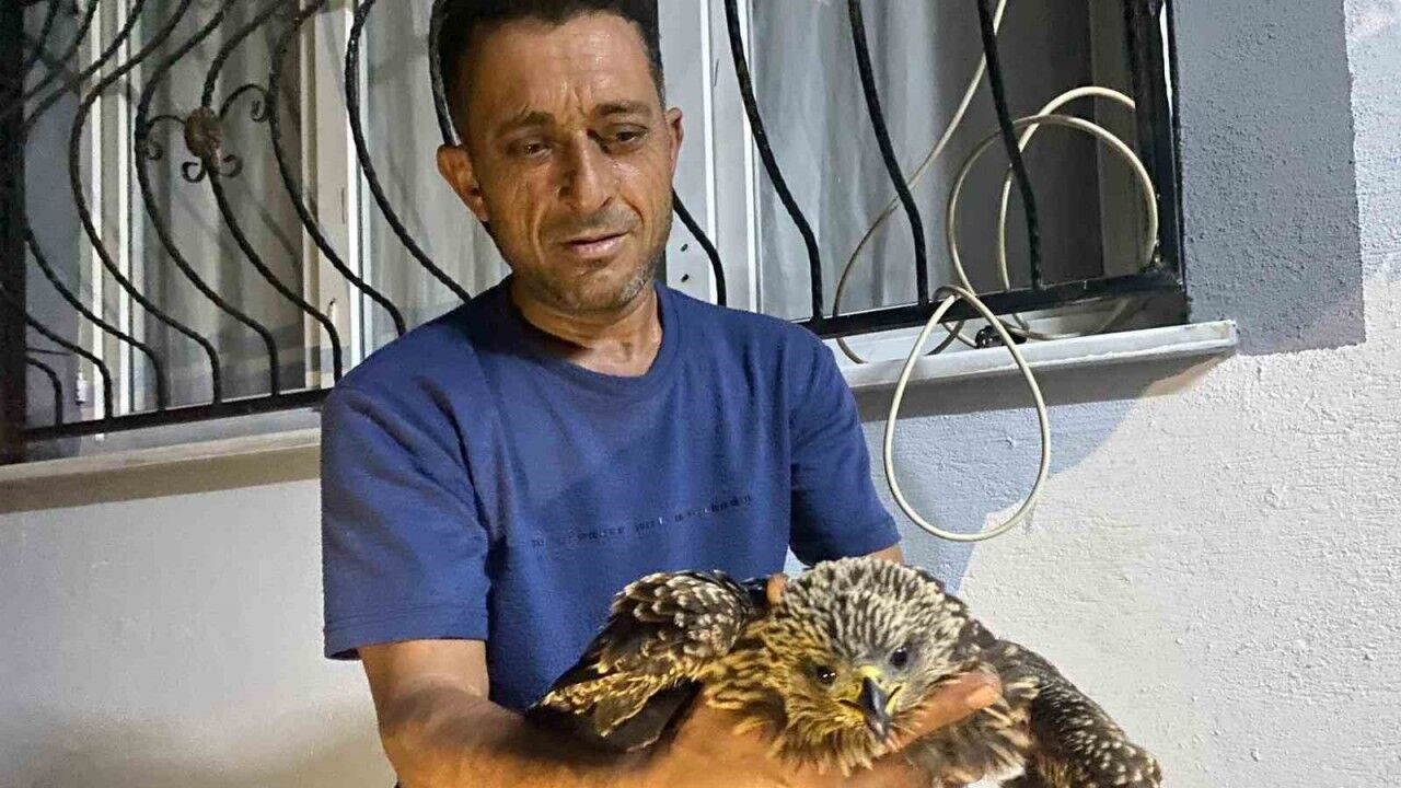 Osmaniye’nin Düziçi ilçesinde incir toplarken kanalın içinde bitkin halde bulduğu şahini kurtaran çiftçi Ali Kötüğ, açlıktan halsiz kalan kuşa ciğer dürümü söyledi.
