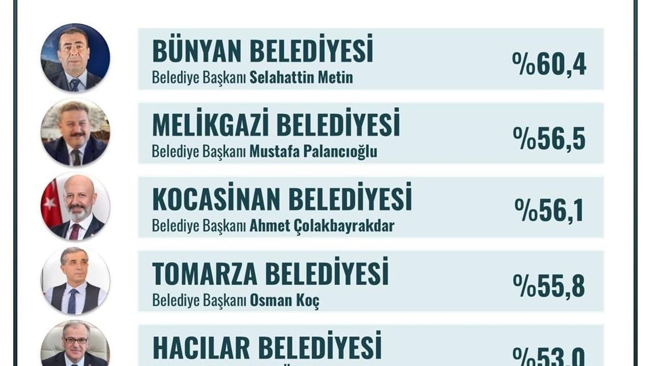 ORC Araştırma tarafından gerçekleştirilen Kayseri Yerel Yönetimler Memnuniyet Araştırması sonuçlandı. 3 bin 420 vatandaşın katılımıyla yapılan araştırmada Bünyan Belediyesi, yüzde 60,4 memnuniyet oranıyla Kayseri genelinde en başarılı ilçe belediyesi seçildi.